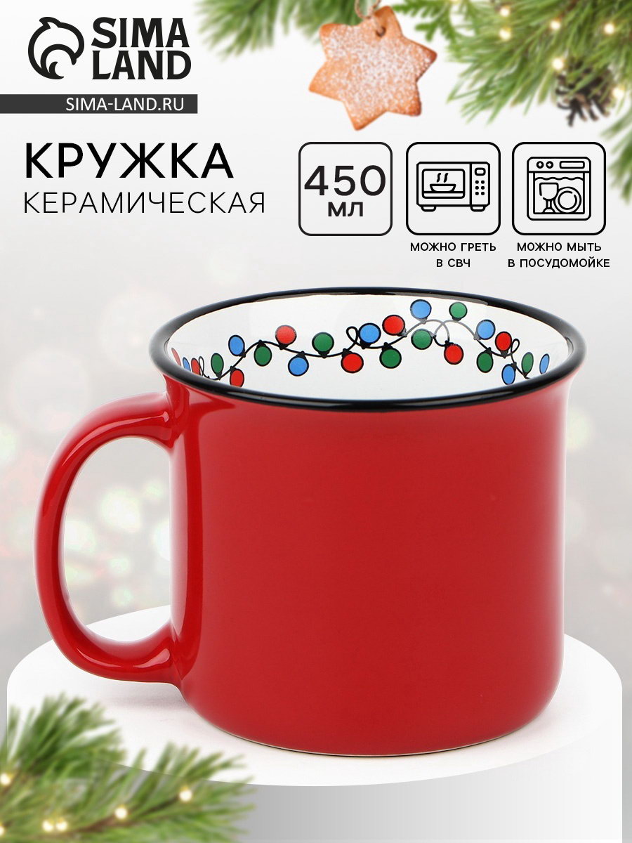 Кружка керамическая, новогодняя "Гирлянда", 450 мл, 450 мл., Китай