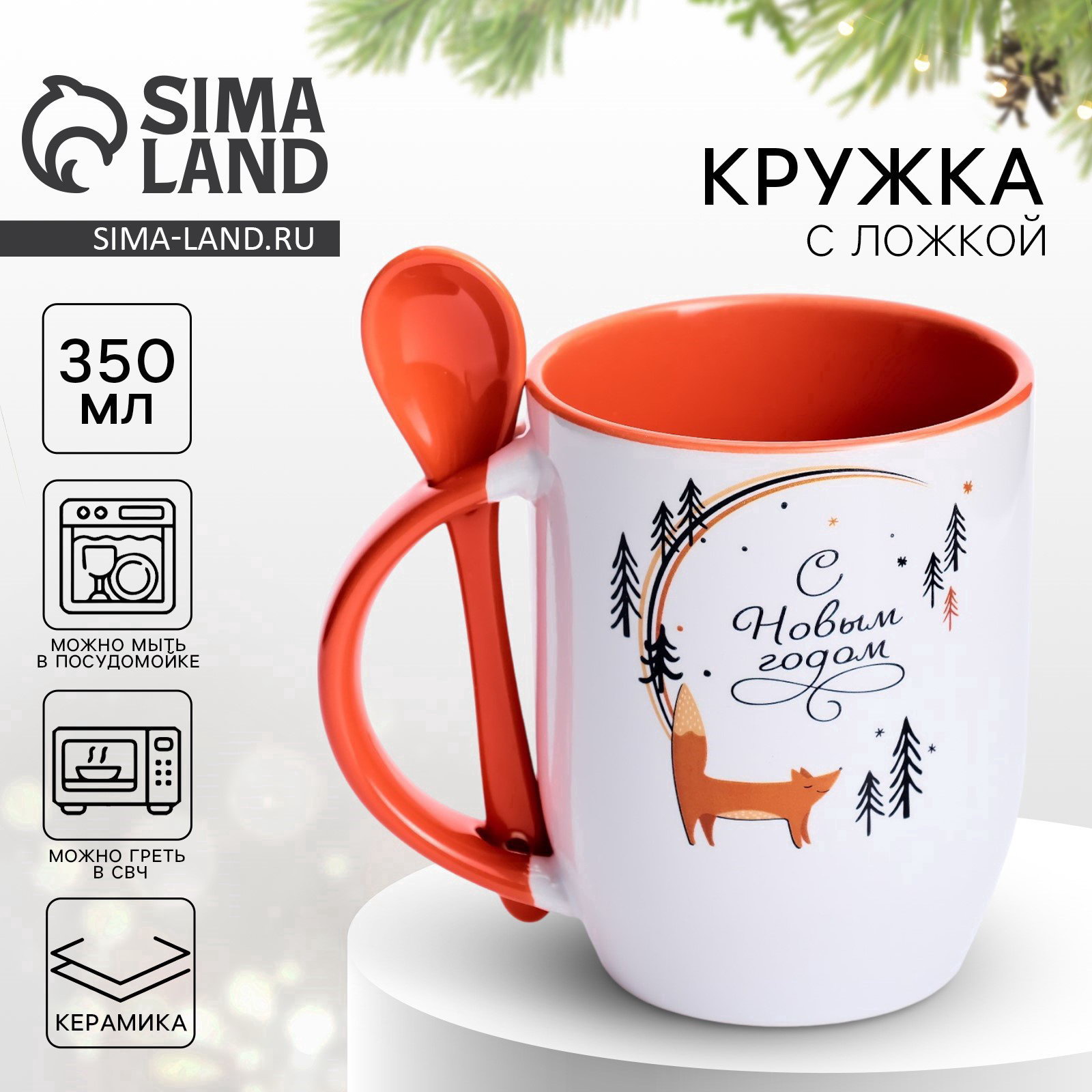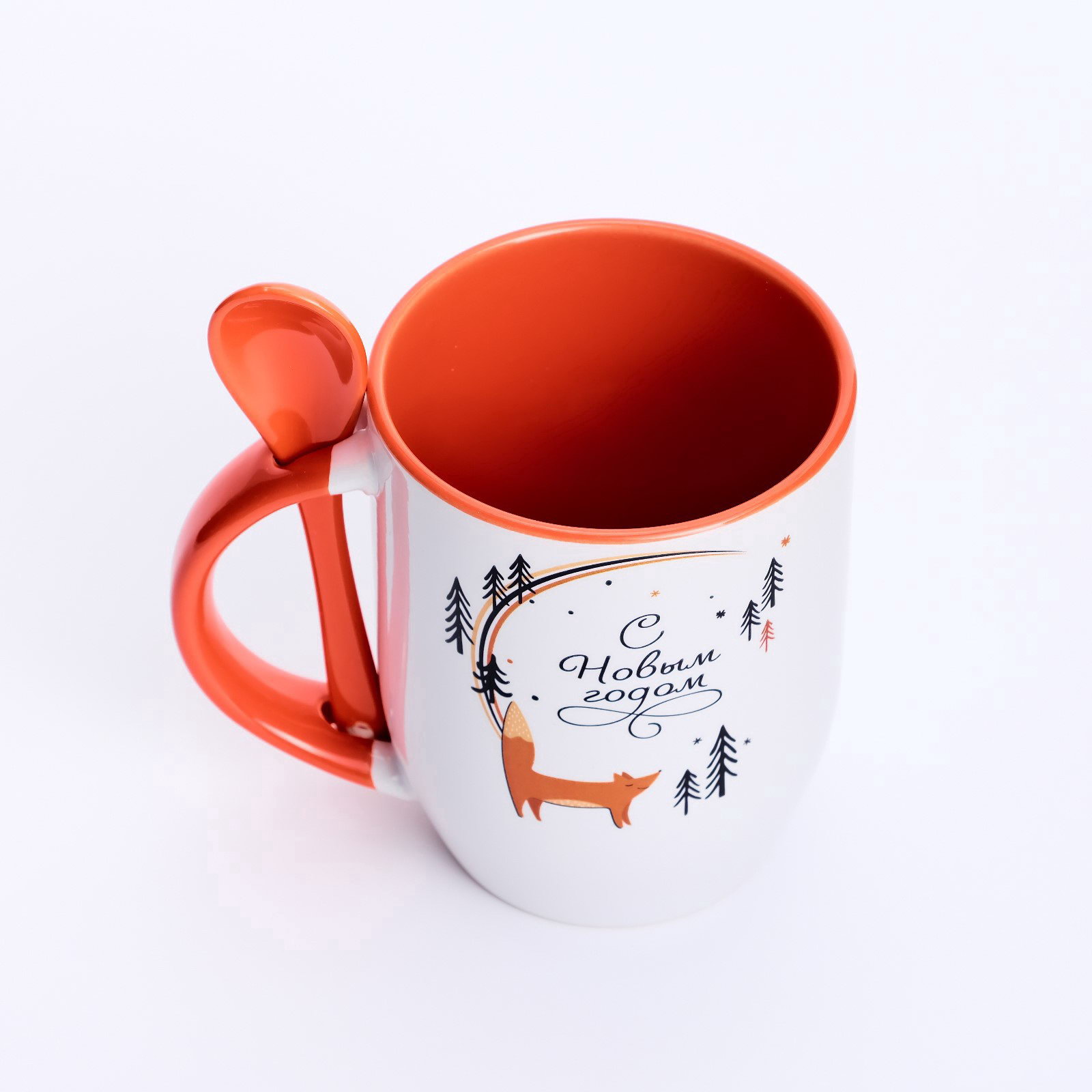 Кружка с ложкой керамическая "С Новым годои", 350 мл, 350 мл., Китай