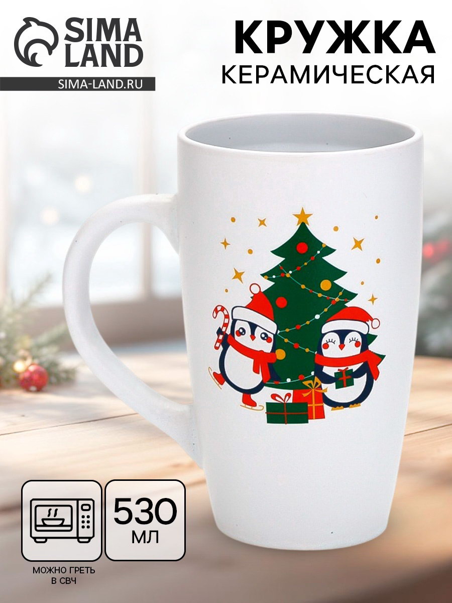 Кружка новогодняя "Пингвины", матовая широкая, 530 мл, 8x14x8 см., Дорого внимание, Китай