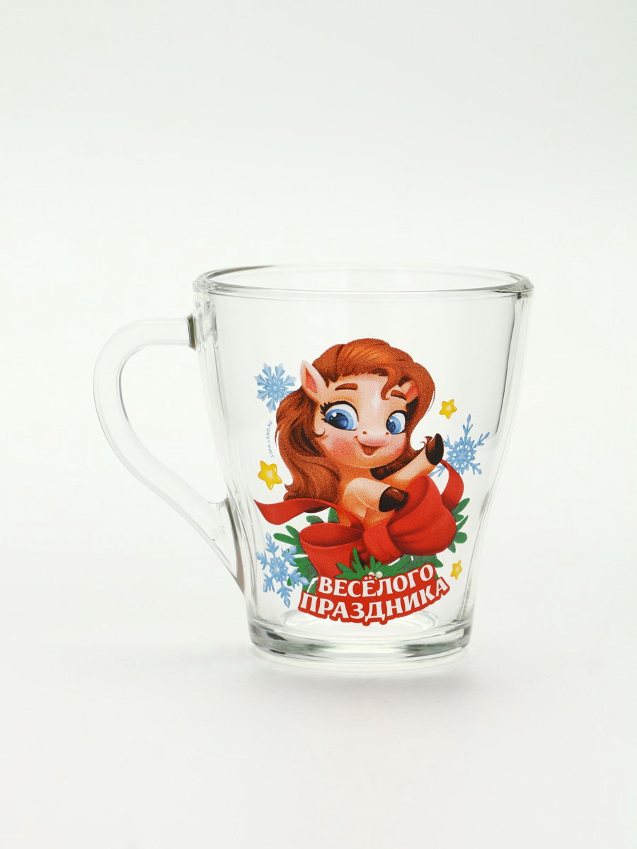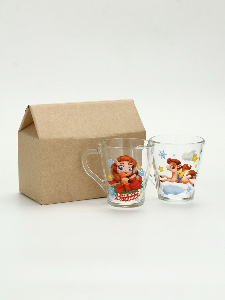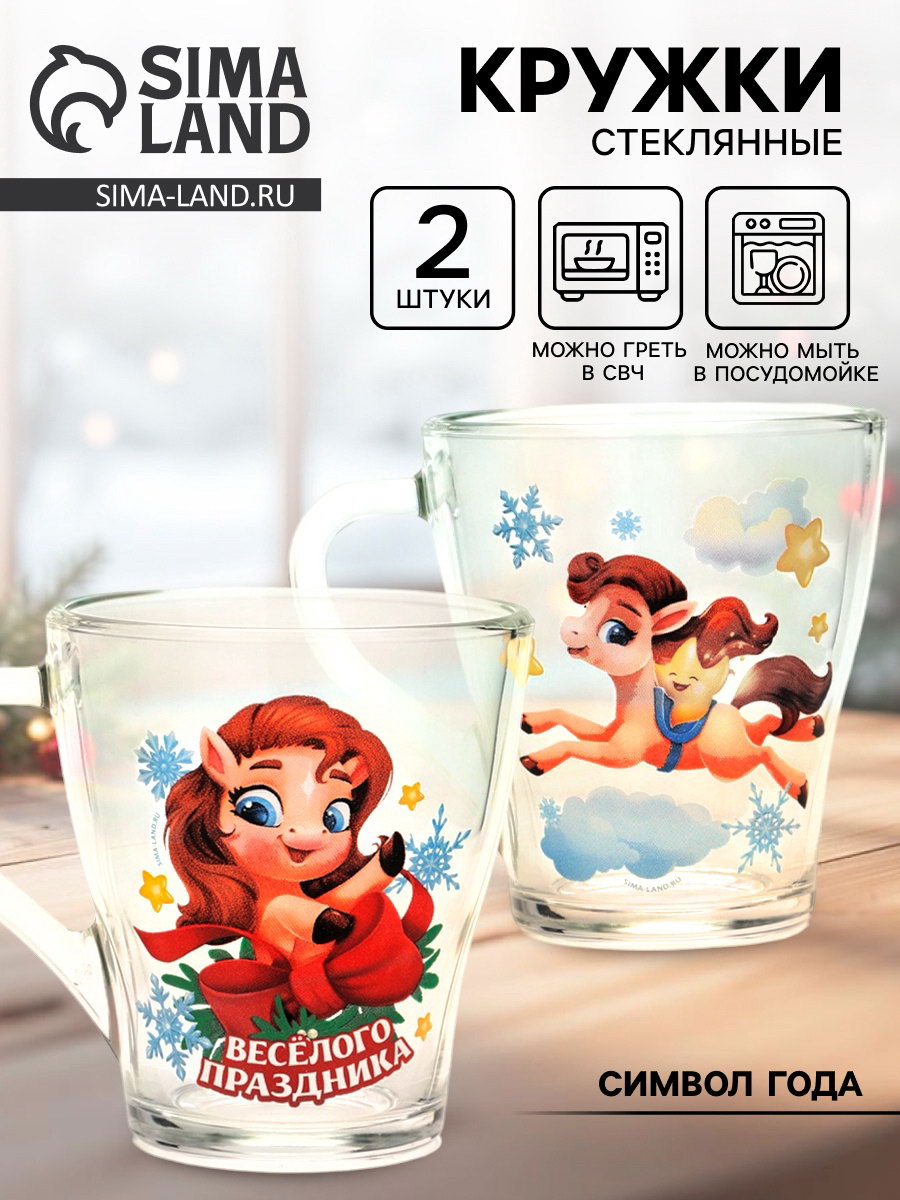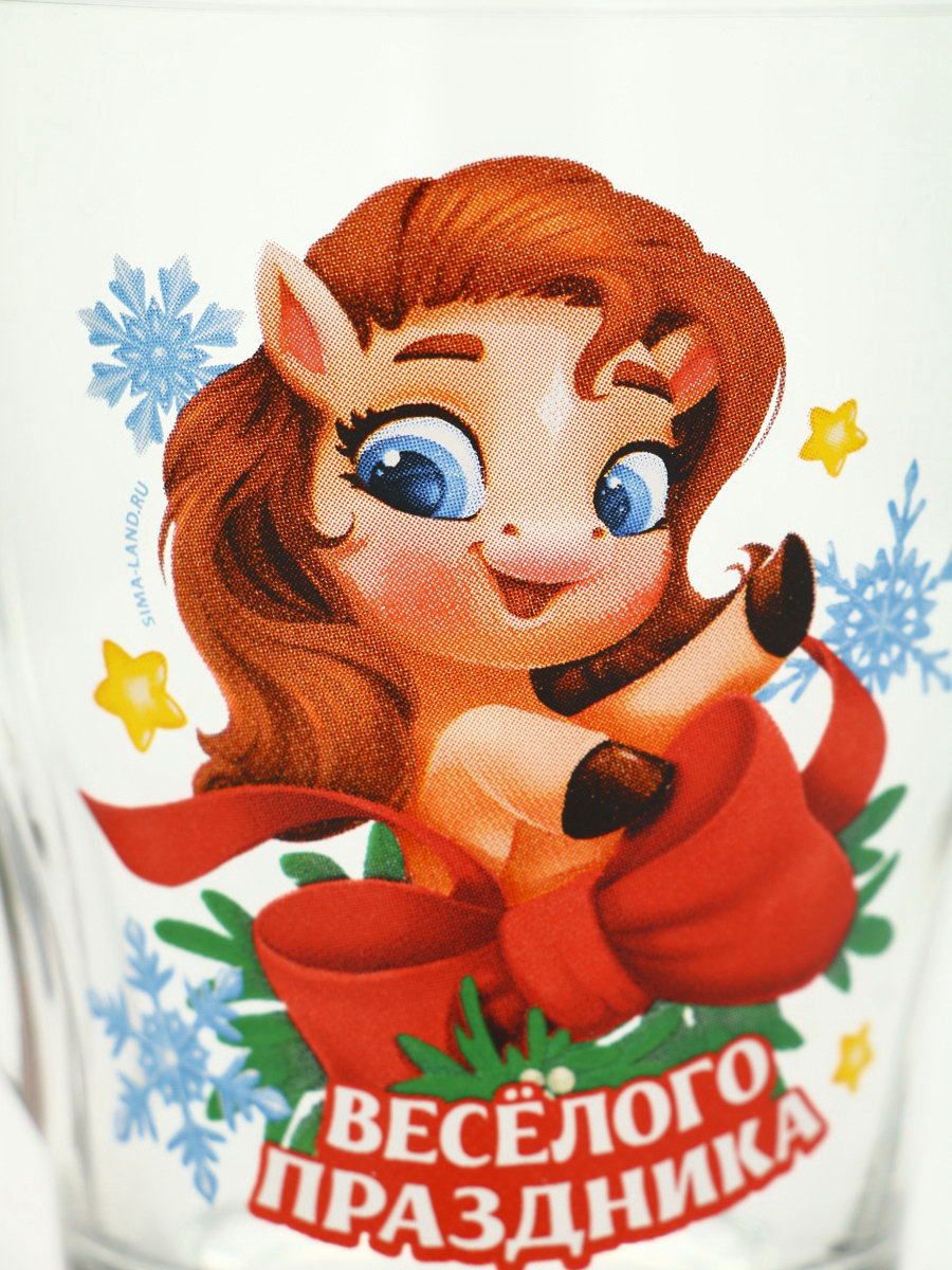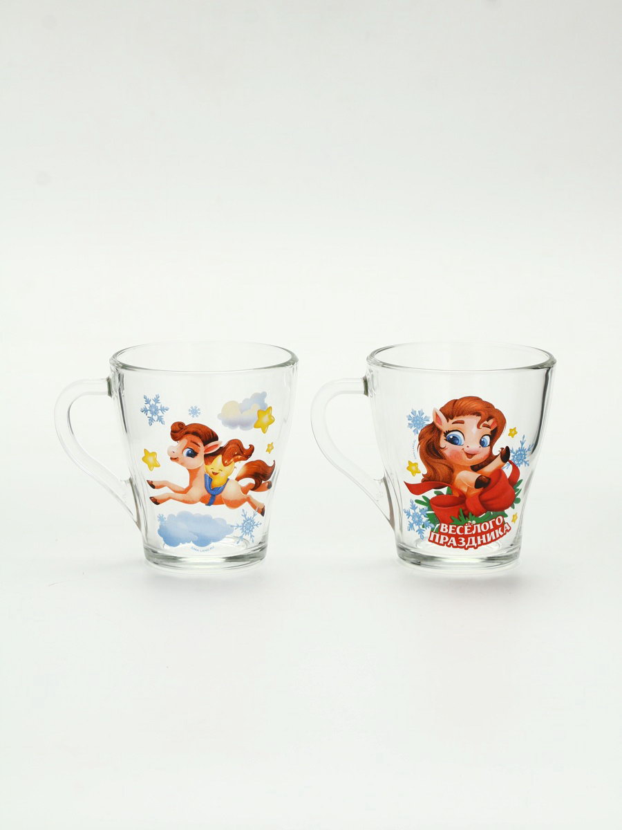 Кружки стеклянные новогодние "Весёлого праздника. Лошади", набор 2 шт., Дорого внимание, Россия