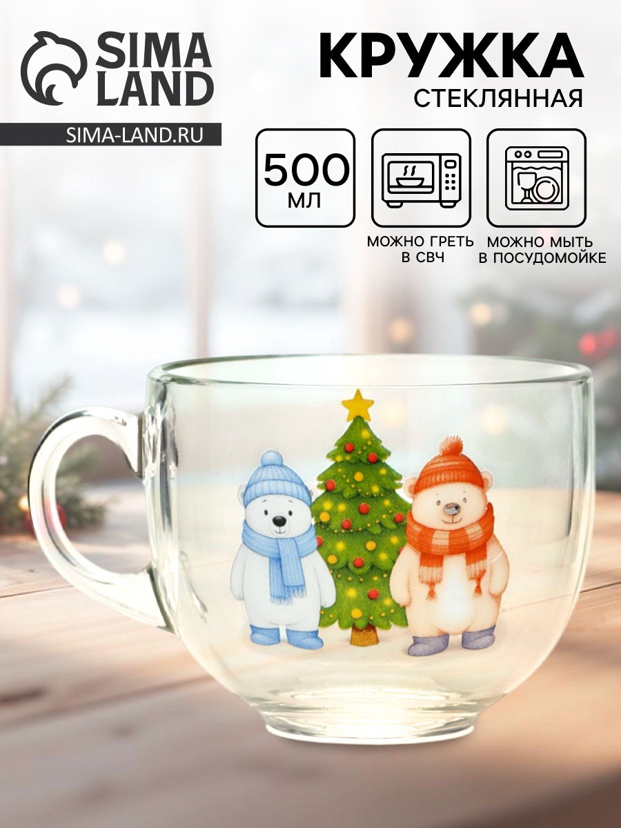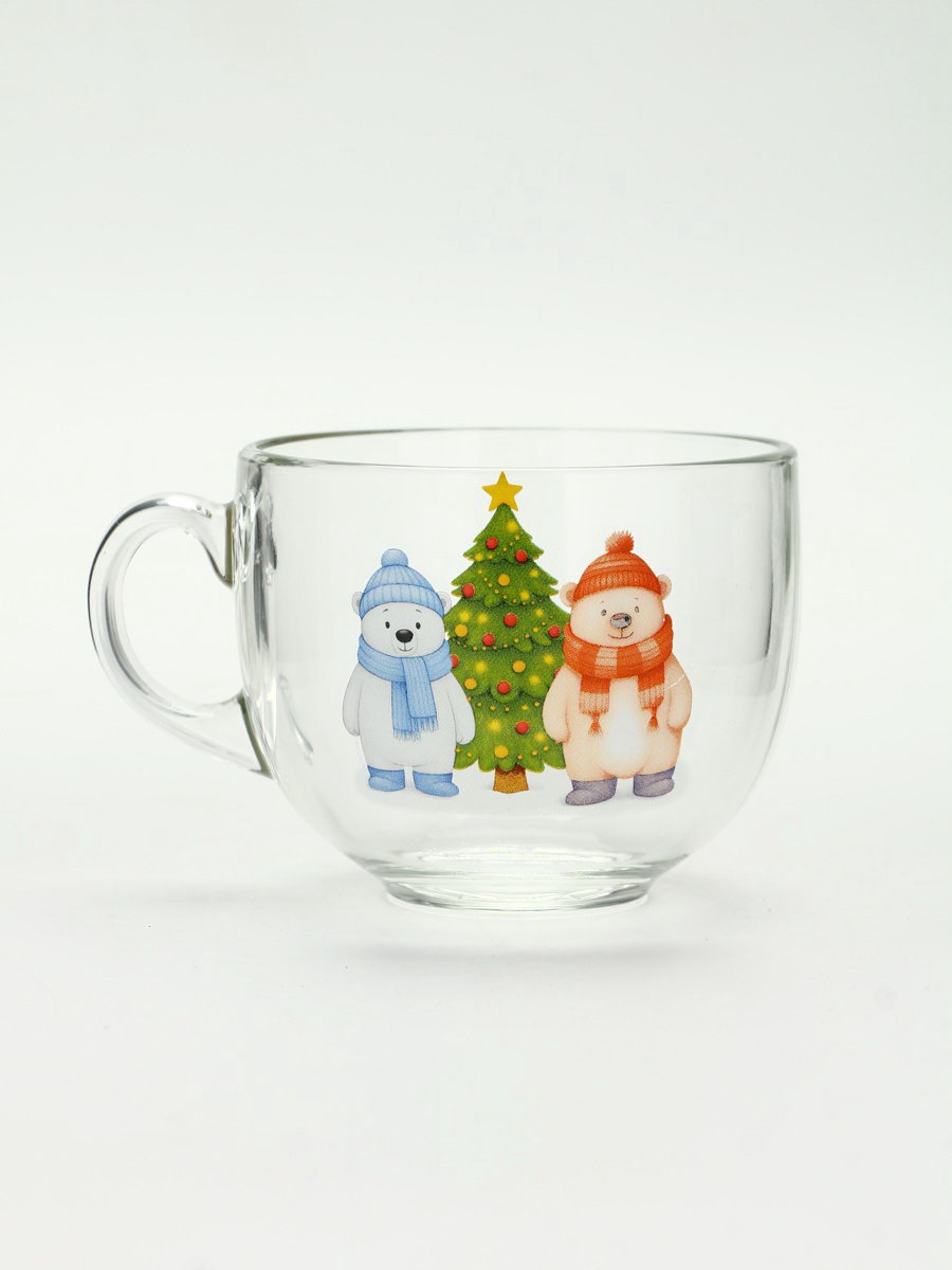 Кружка стеклянная новогодняя "Мишки в лесу", 500 мл, 500 мл., Дорого внимание, Россия
