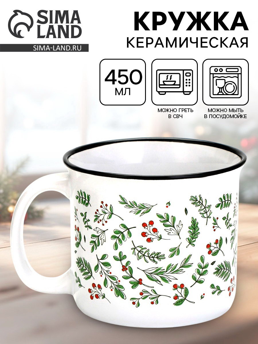 Кружка керамическая, новогодняя "Листья", 450 мл, 450 мл., Дорого внимание, Китай