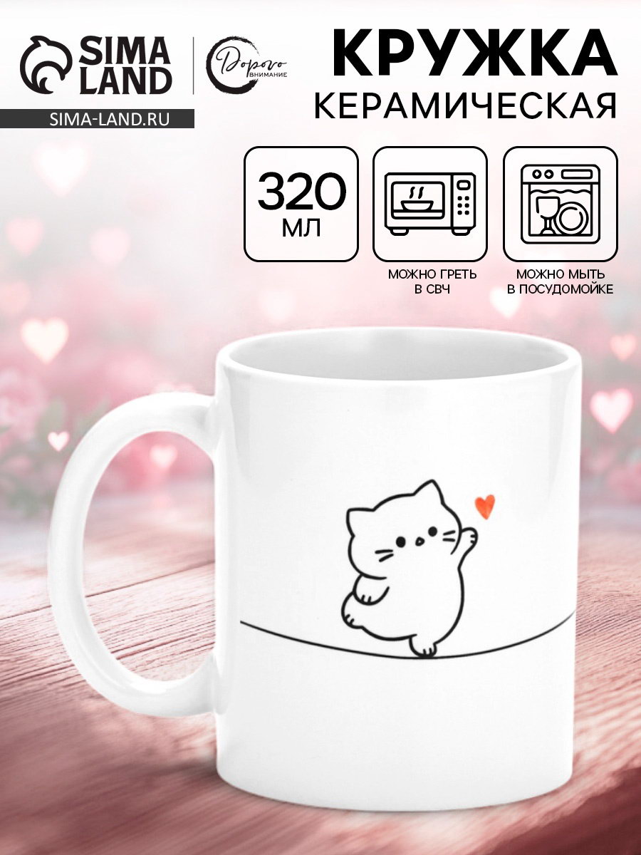 Размер упаковки: 12 x 9.5 x 8 см. tnved: 6912002600 Цвет: Белый Набор: Нет Дополнительный аксессуар: Без аксессуаров Тематика: Любовь Рисунок: Да Текстура: Гладкая Индивидуальная упаковка: Нет Можно использовать в СВЧ-печи: Да Можно мыть в посудомоечной машине: Да Особенности: Сублимация Керамическая кружка "Держись лапками за счастье" это стильный и практичный аксессуар для вашей половинки. Преимущества:
