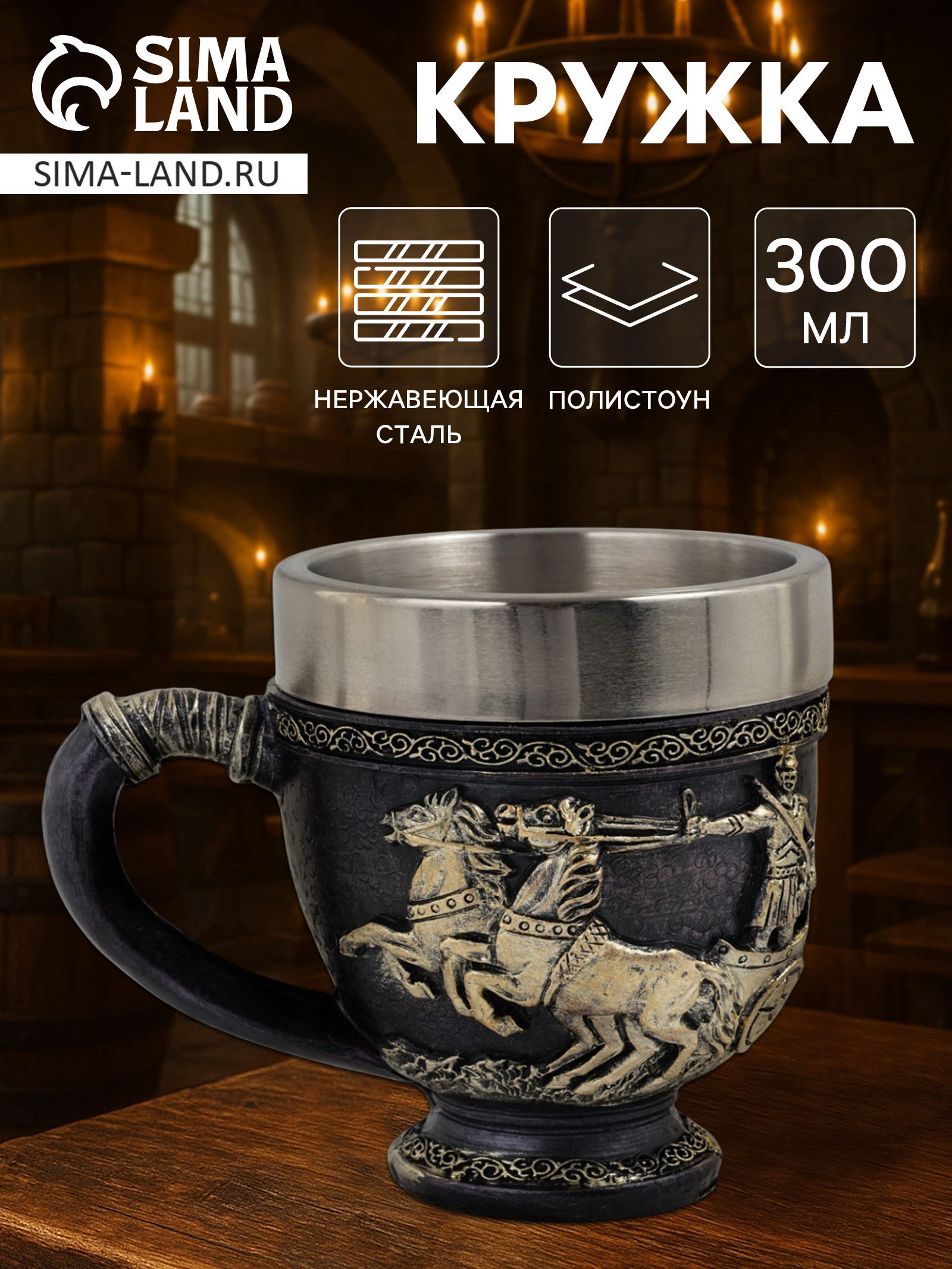 Кружка средневековая "Колесница", 300 мл, нержавеющая сталь, серебристая, 1x1x1 см., Китай