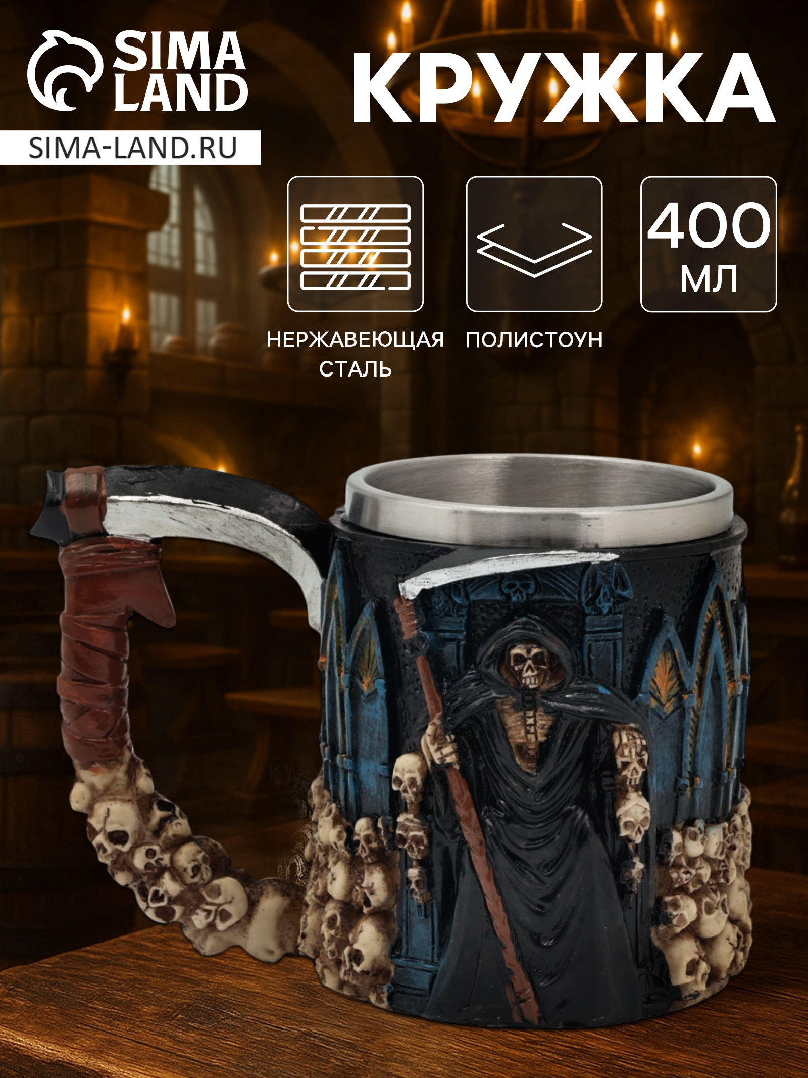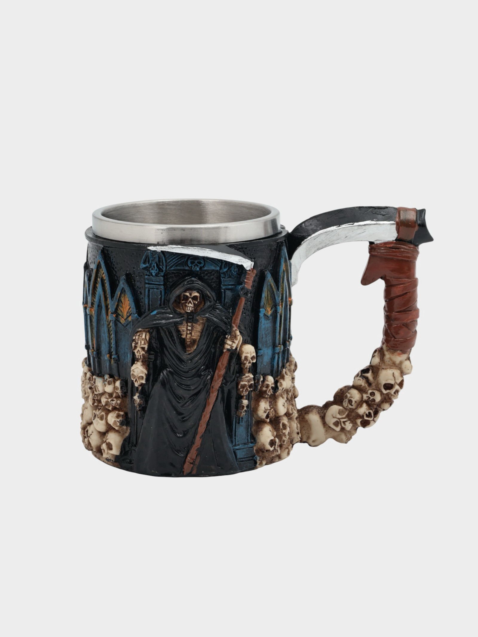 Кружка средневековая "Смерть с косой", 400 мл, нержавеющая сталь, синяя, 1x1x1 см., Китай