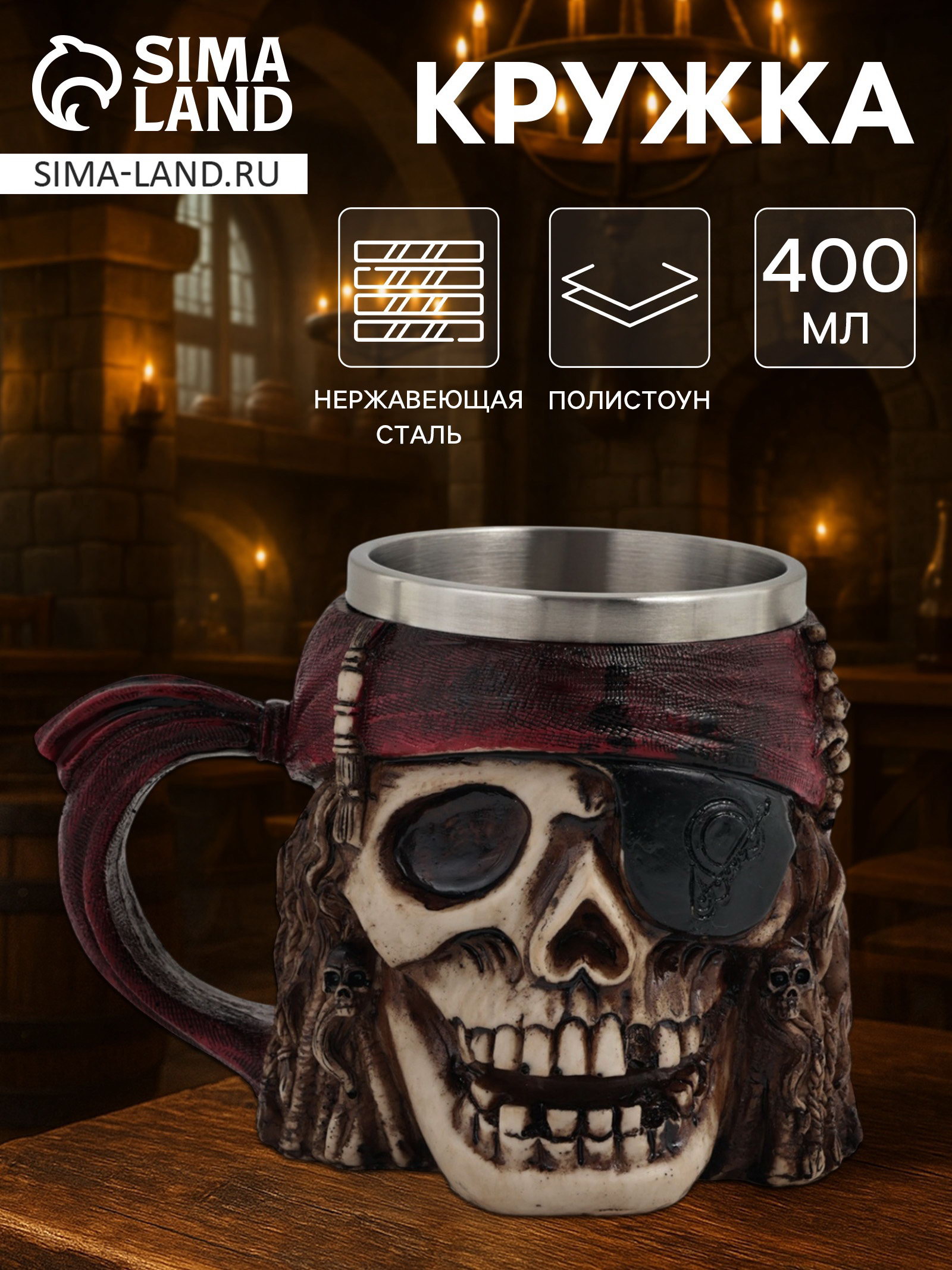 Кружка "Пират", 400 мл, нержавеющая сталь, коричневая, 1x1x1 см., Китай