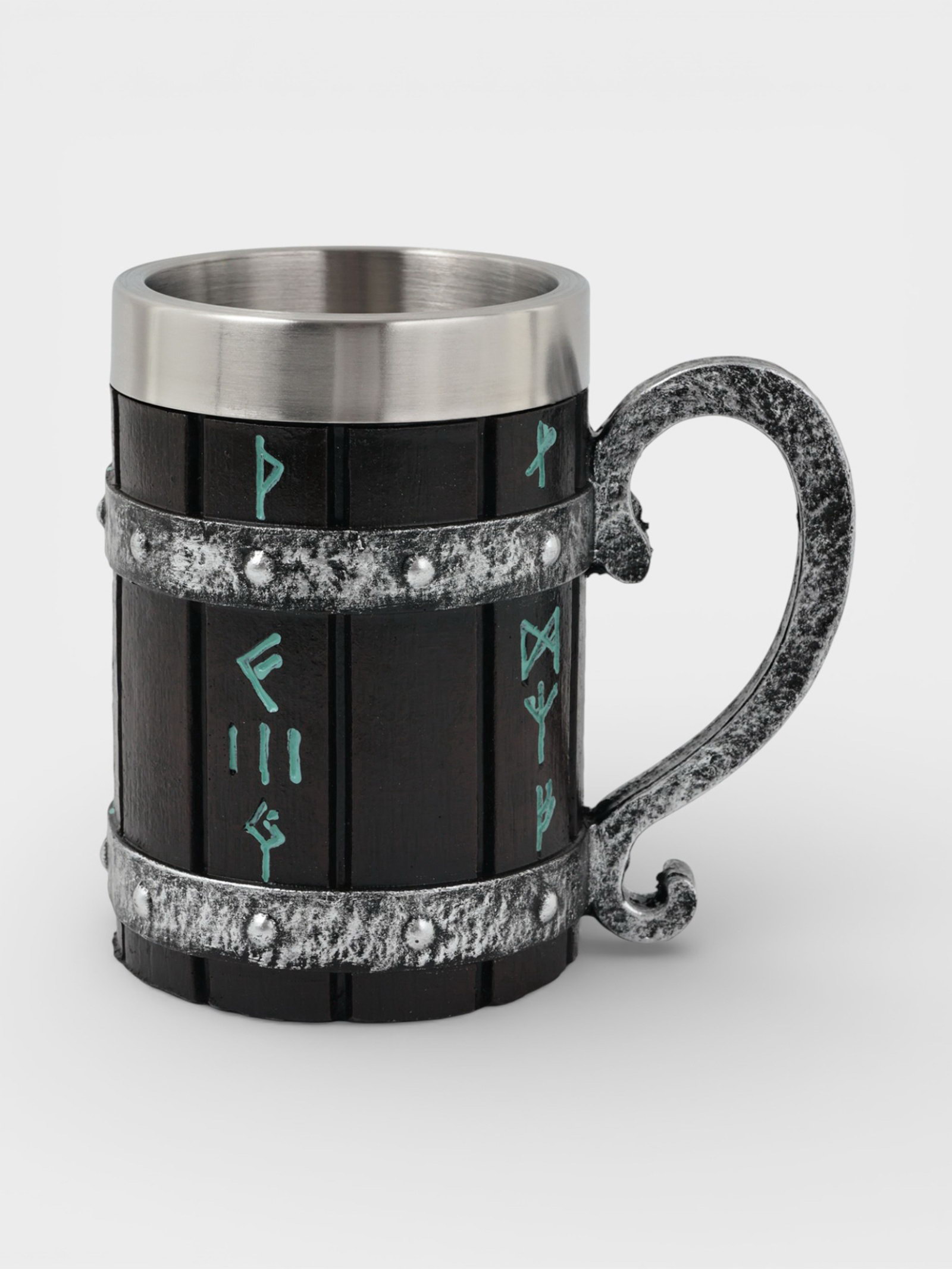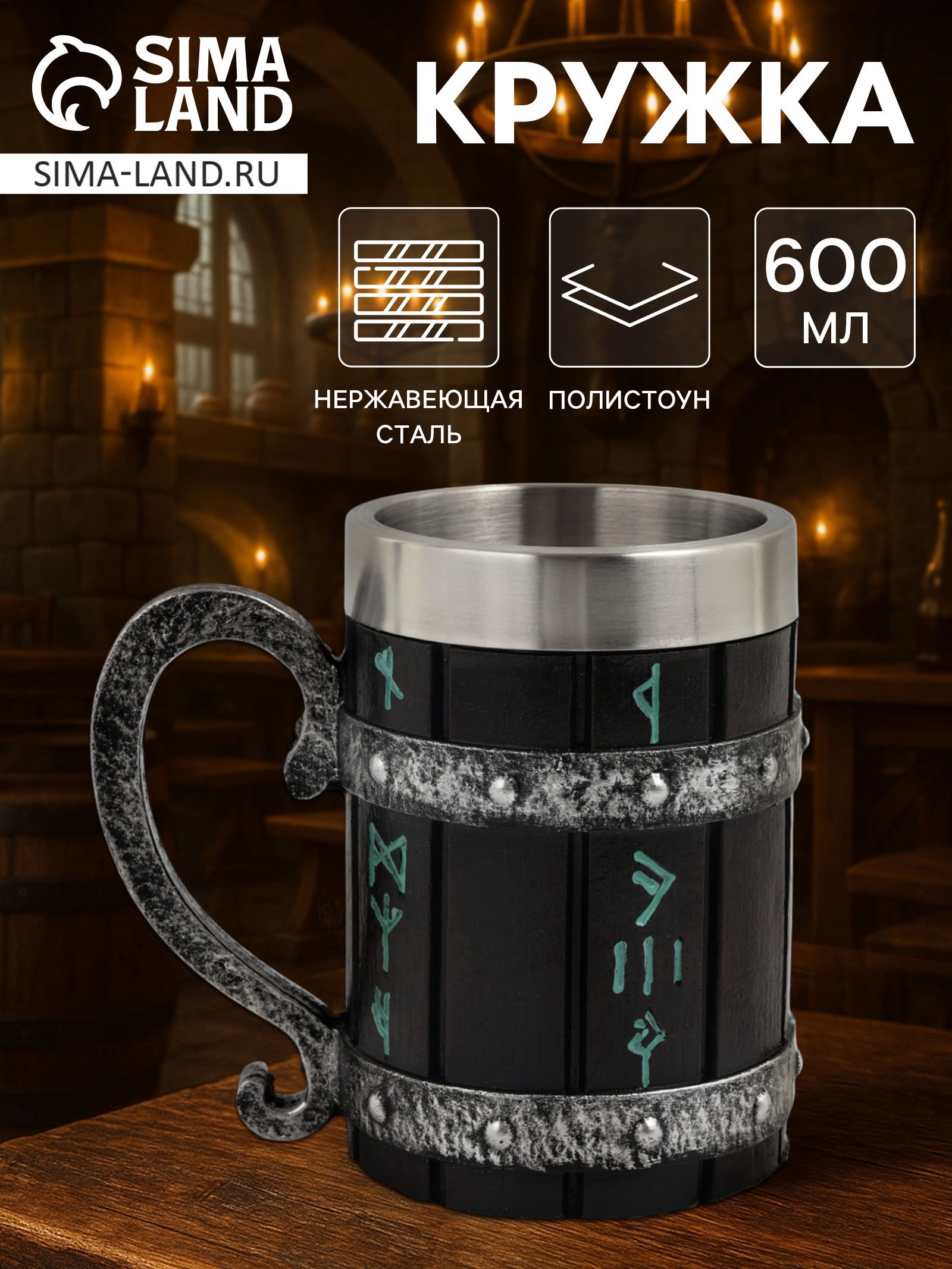 Кружка средневековая "Руны", 400 мл, нержавеющая сталь, чёрная, 1x1x1 см., Китай