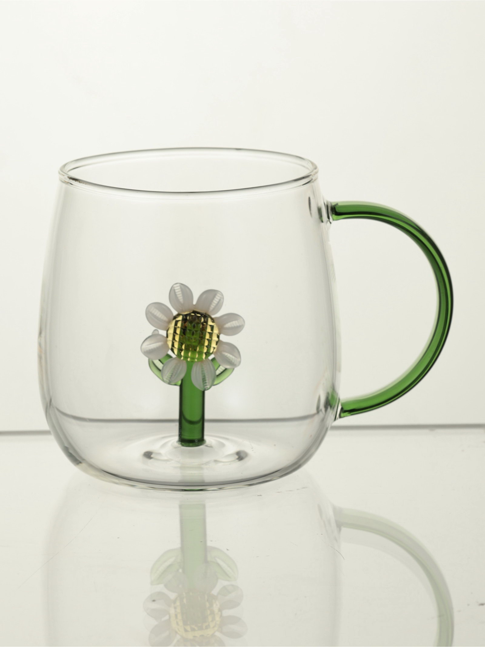 Кружка стеклянная "Ромашка" 400 мл, зеленая ручка, 9х12.5х9 см, 8.7x12x8.5 см., Китай