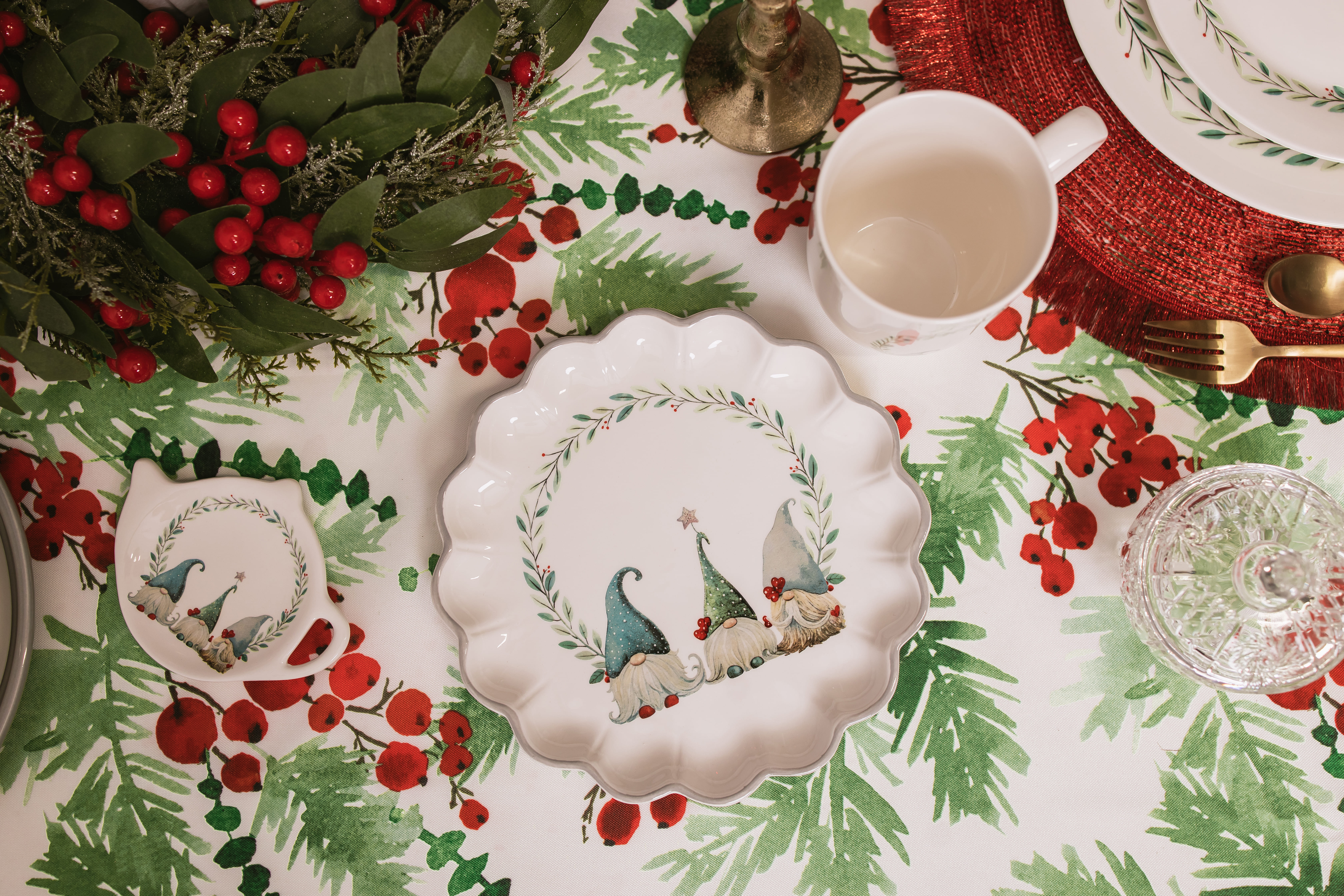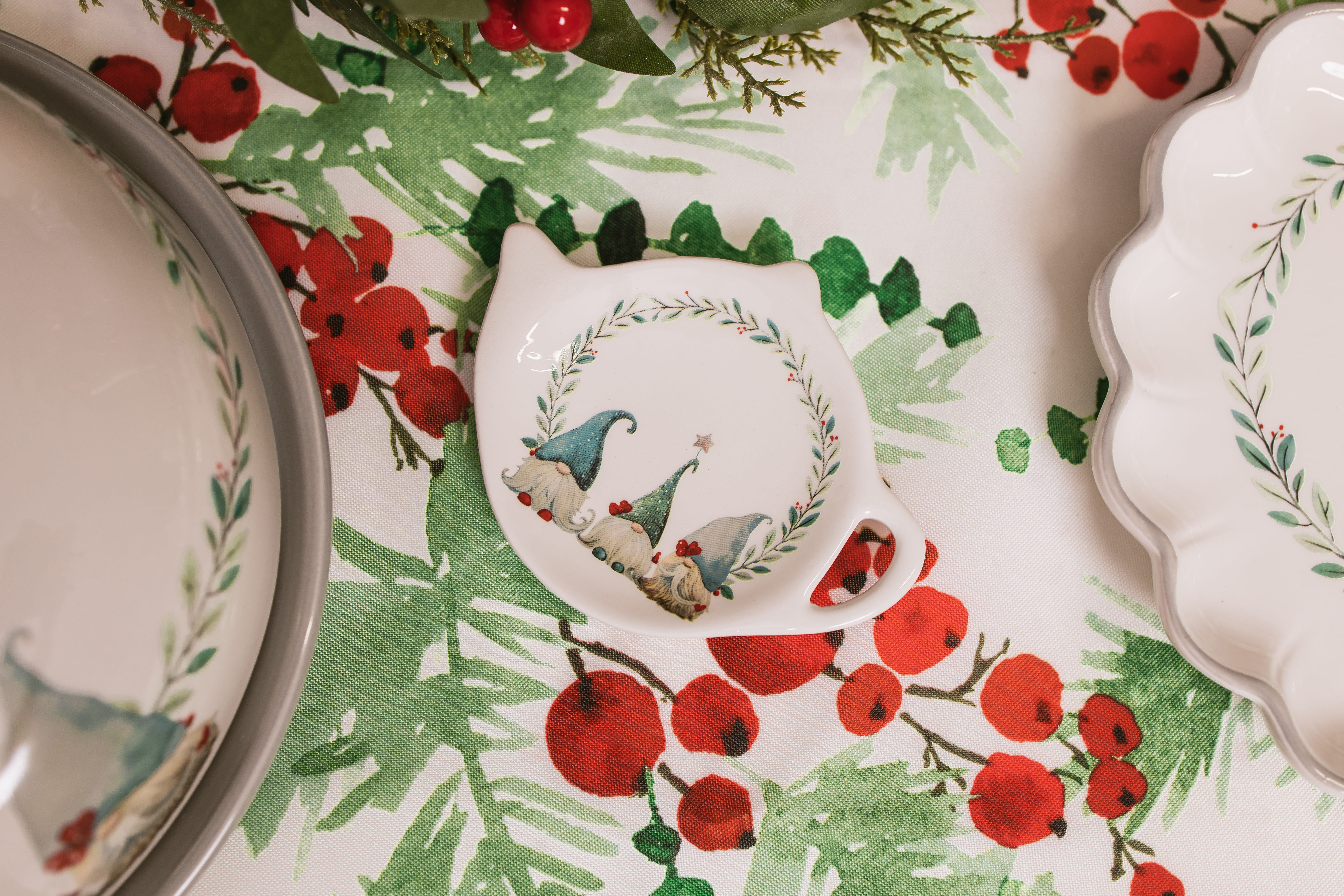 Подставка под чайный пакетик новогодняя "Домашние гномики", 12x9.4x1.7 см, доломит, белая, 9.4x12x1.7 см., Доляна, Китай