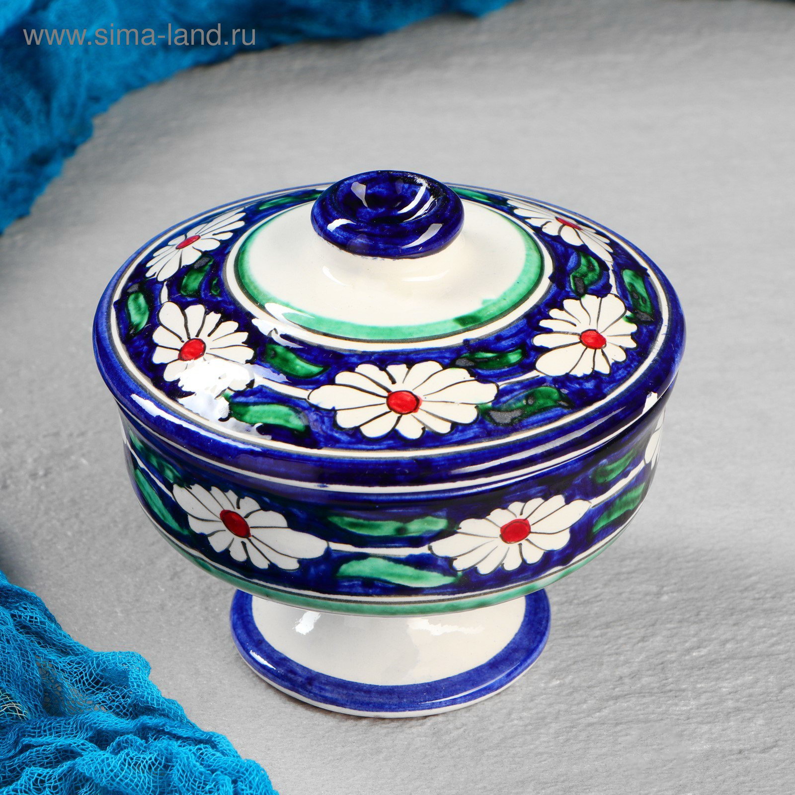 Сахарница узбекская Риштанская Керамика "Цветы", 250 мл, синяя, 250 мл., Шафран, Узбекистан