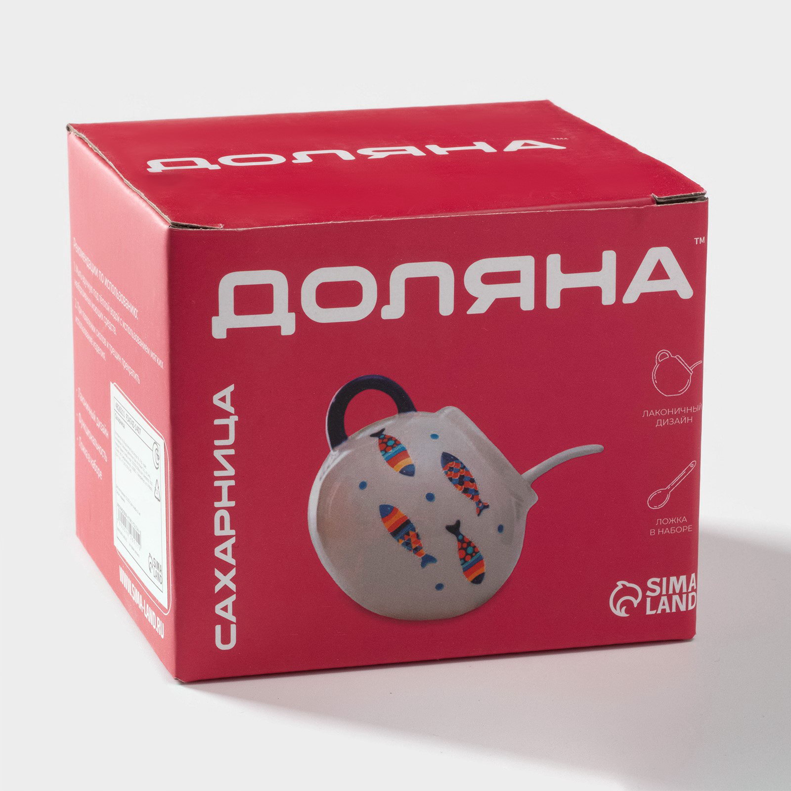 Сахарница "Емеля", 200 мл, с ложкой, доломит, белая, 9x9x9 см., Доляна, Китай
