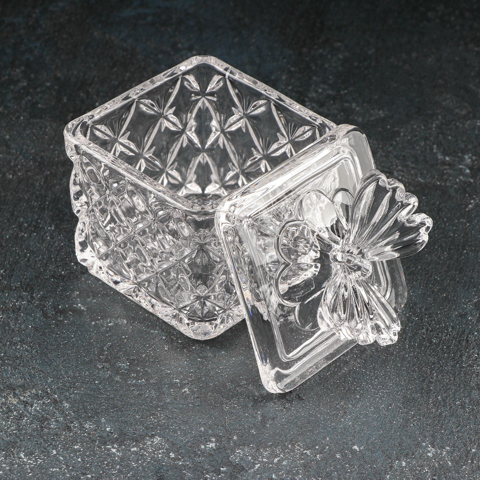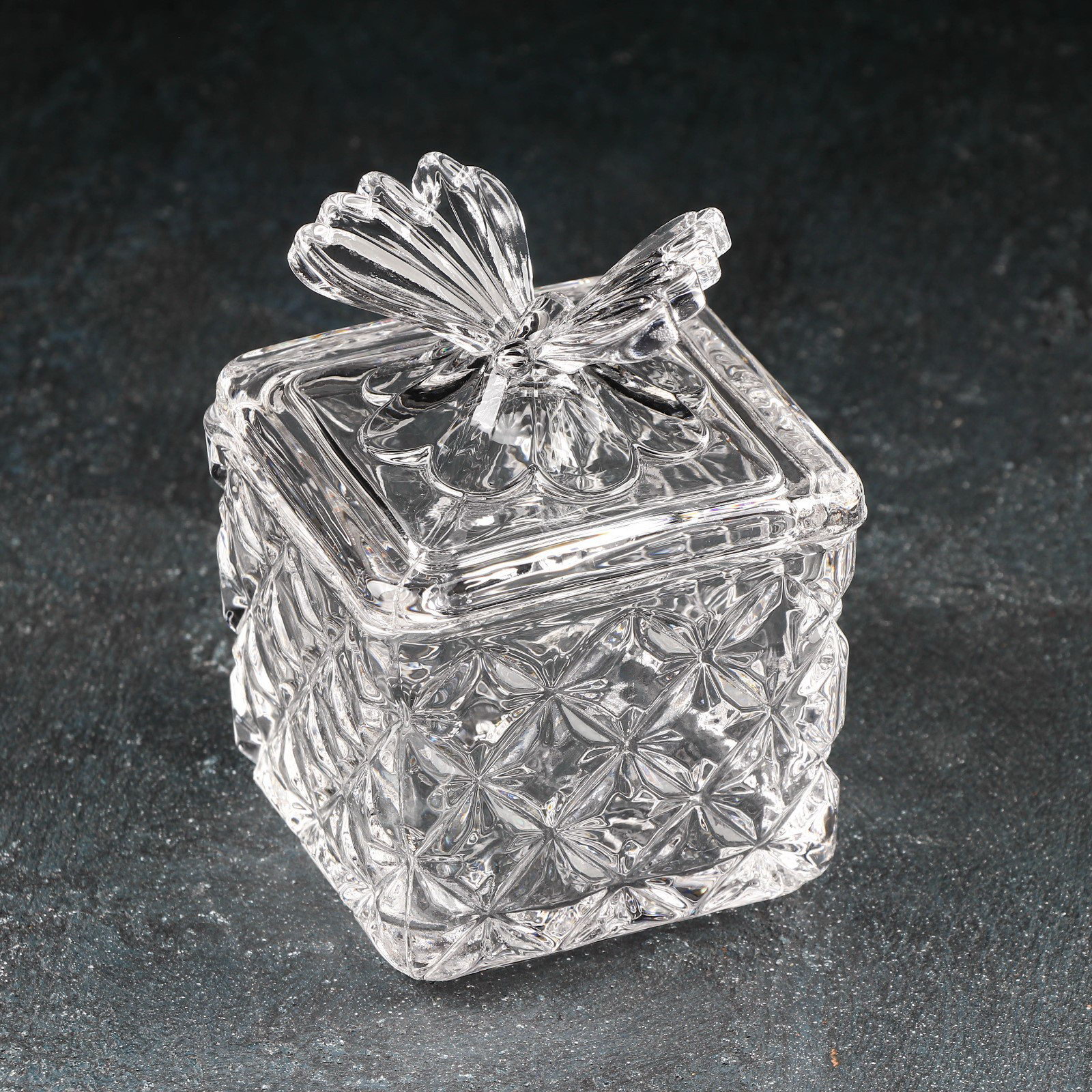 Сахарница стеклянная "Бабочка", 170 мл, 8x10.5 см, с крышкой, 8x8x10.5 см., Китай