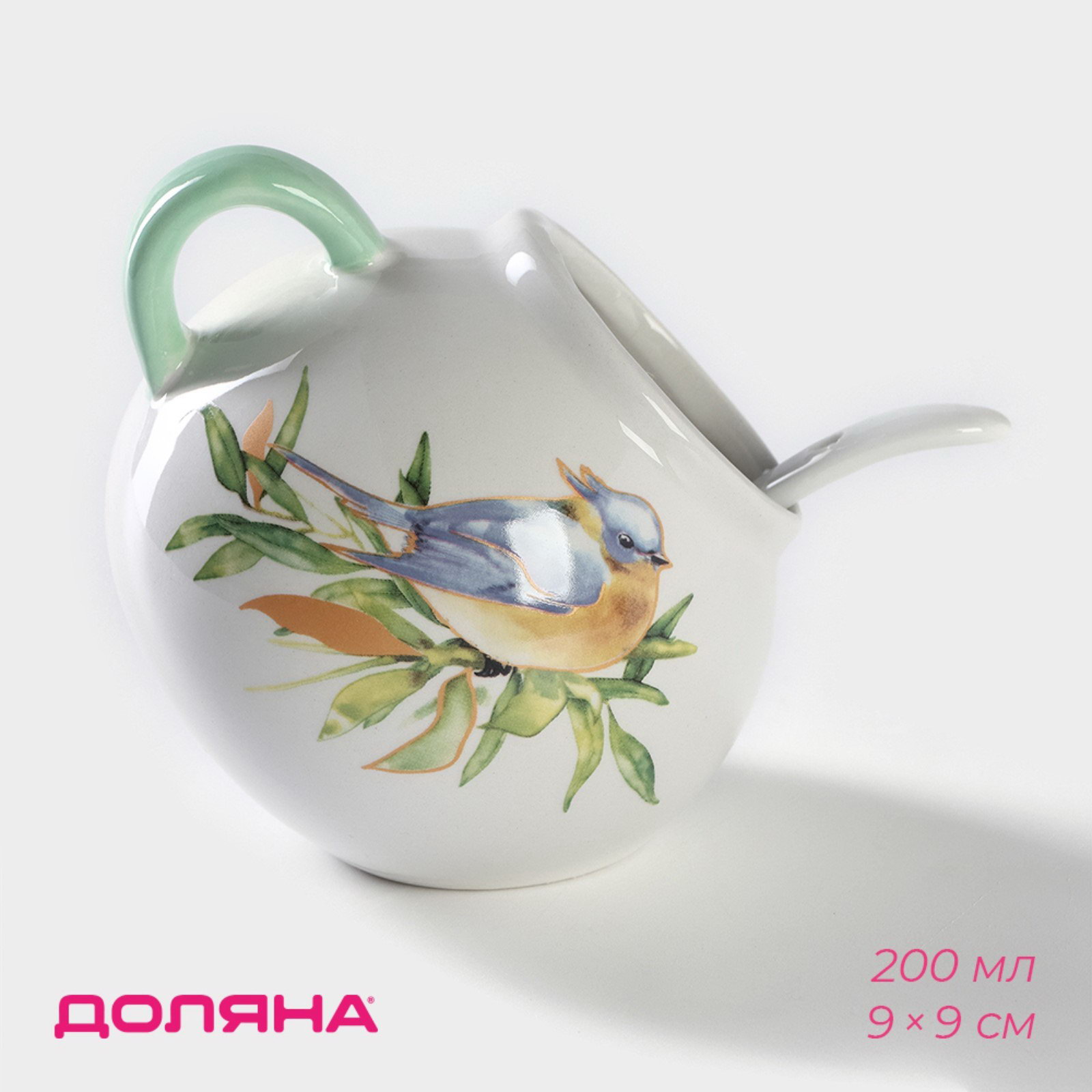 Сахарница с ложкой "Флора и Фауна", 200 мл, 9x9x9 см., Доляна, Китай