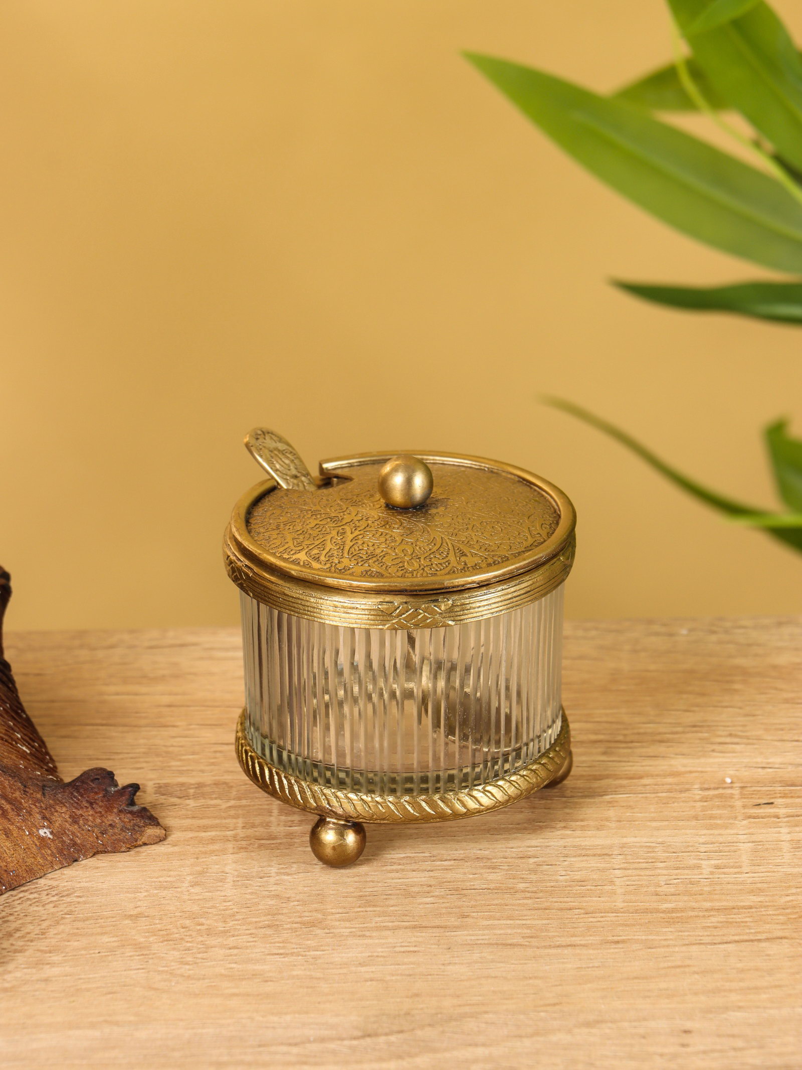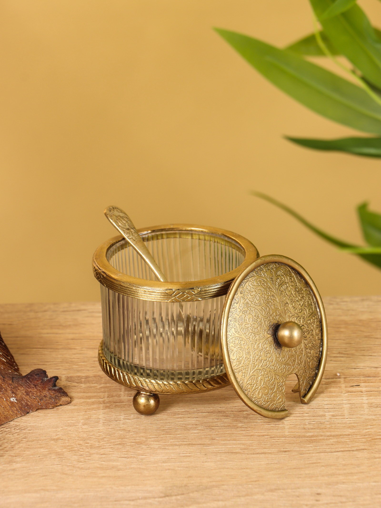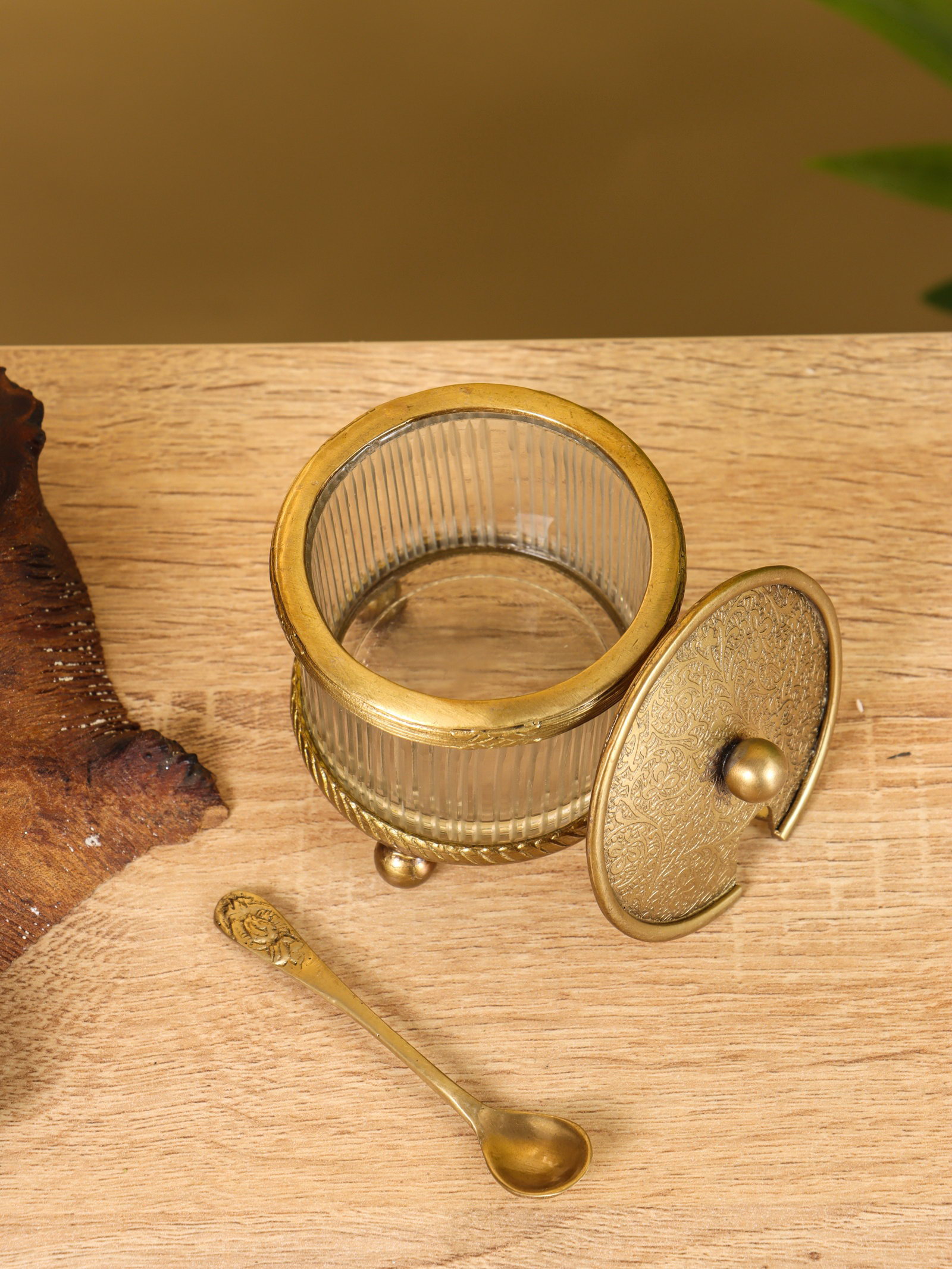 Сахарница с ложечкой "Сластёна", латунь, стекло, 7x7x7.6 см, 6x6x5.5 см., Индия