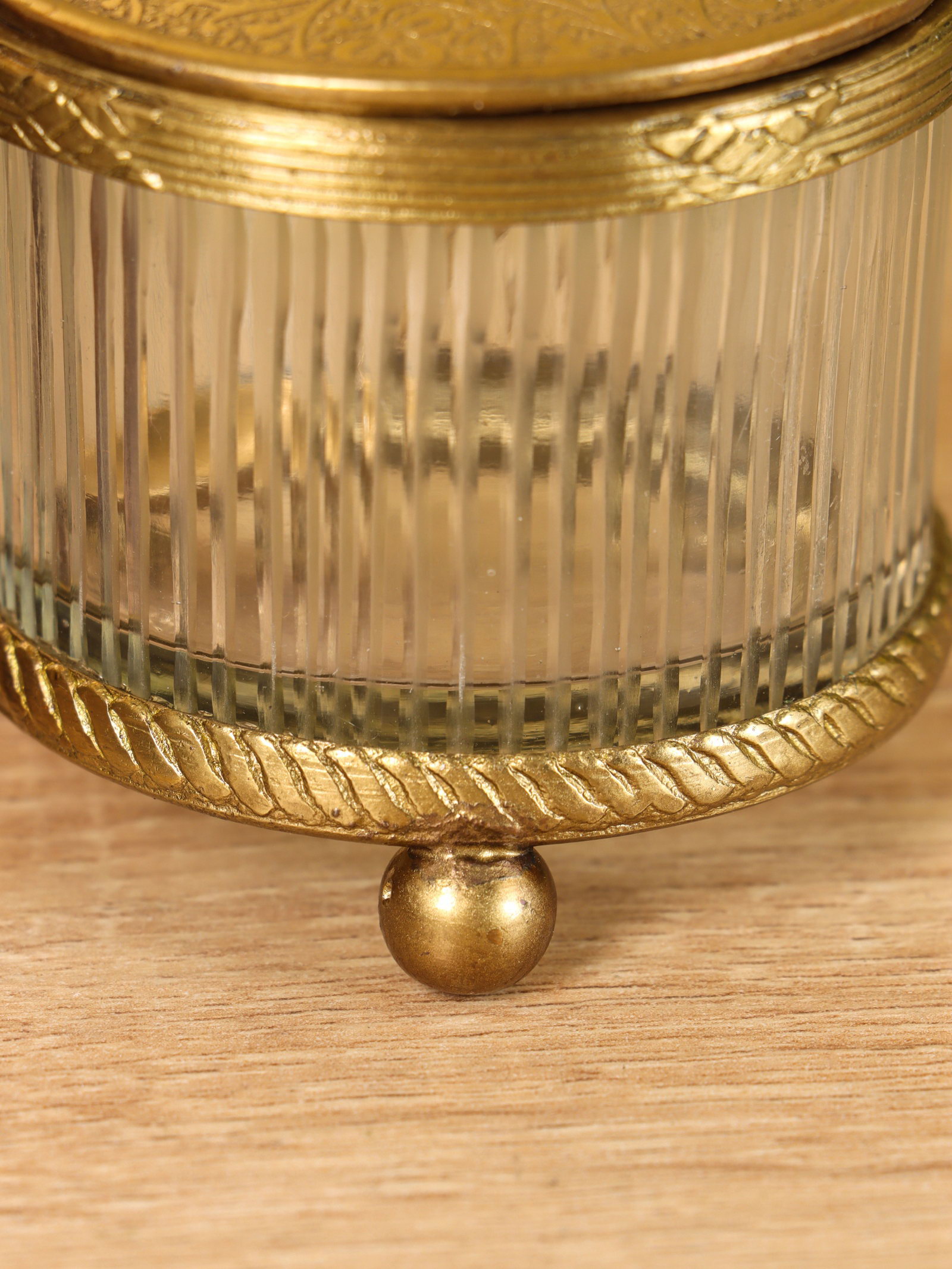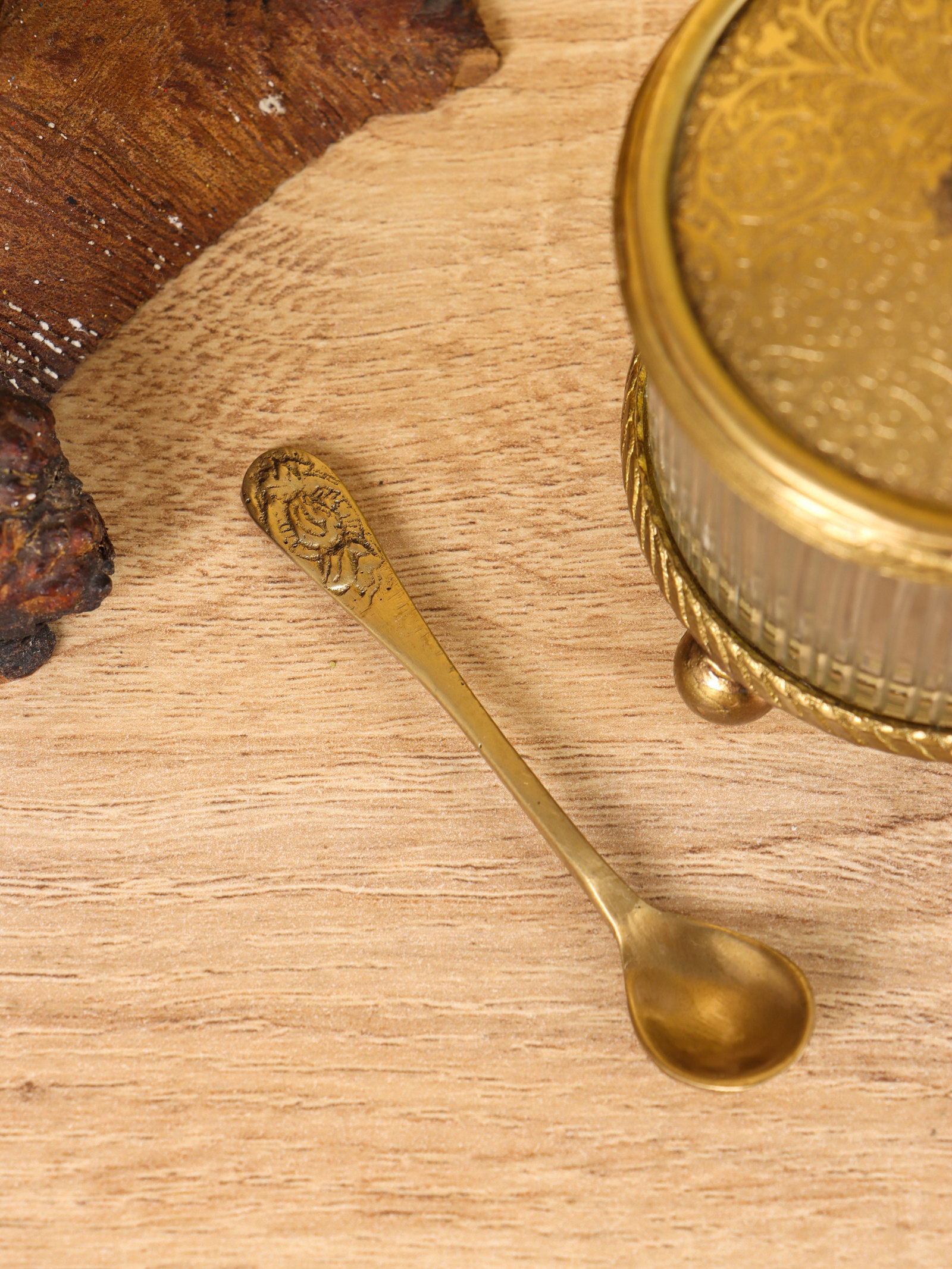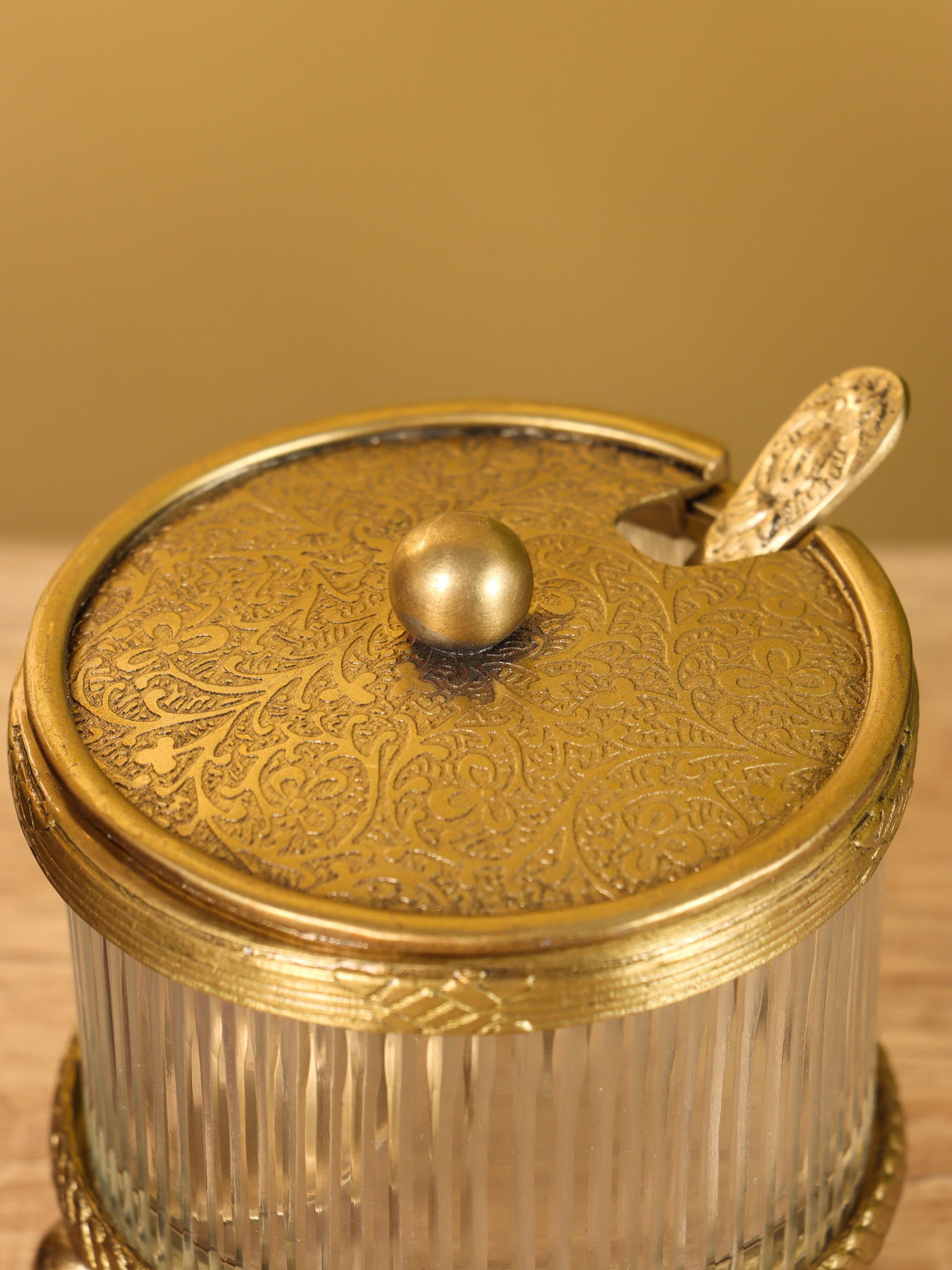 Сахарница с ложечкой "Сластёна", латунь, стекло, 7x7x7.6 см, 6x6x5.5 см., Индия