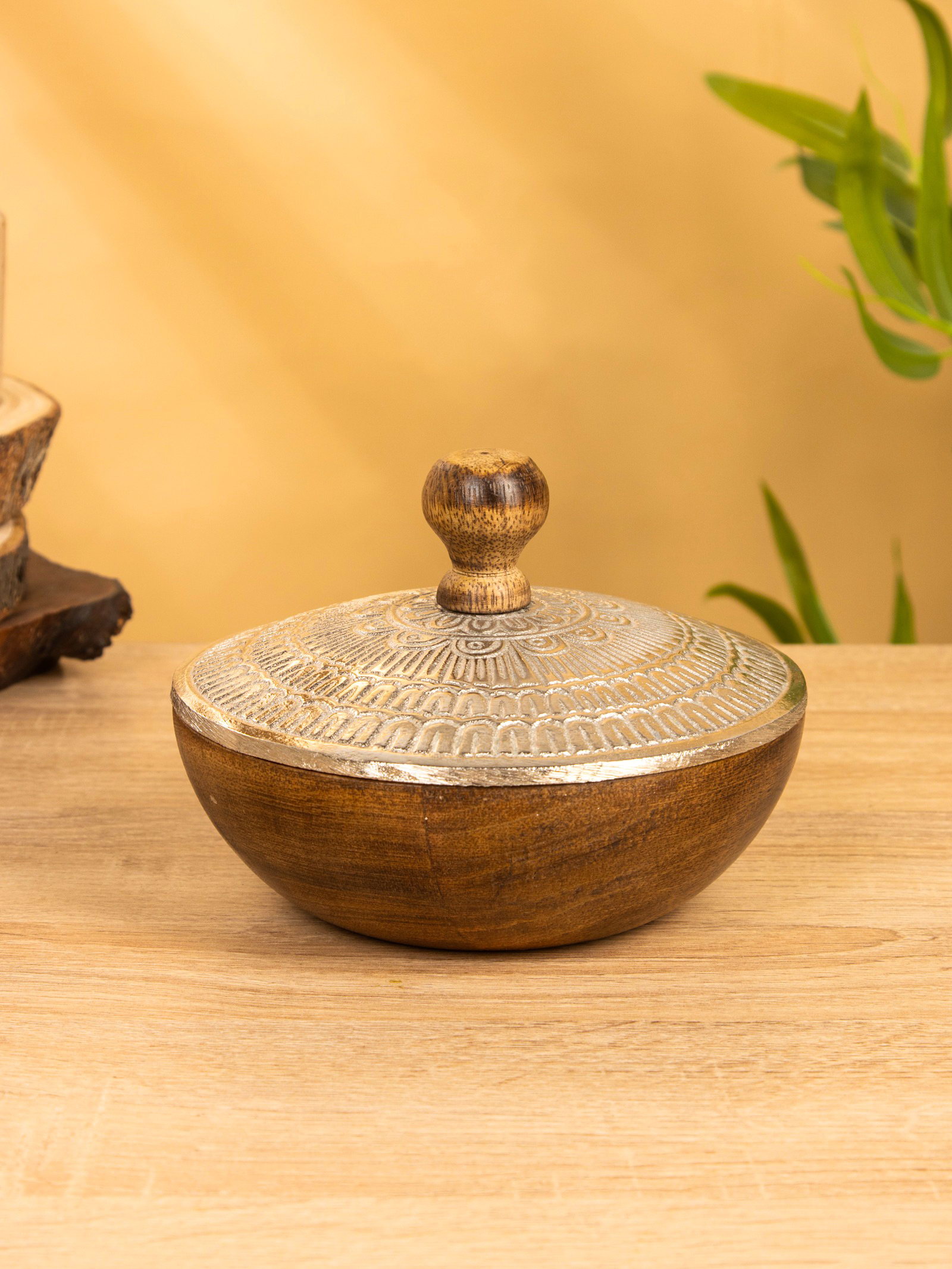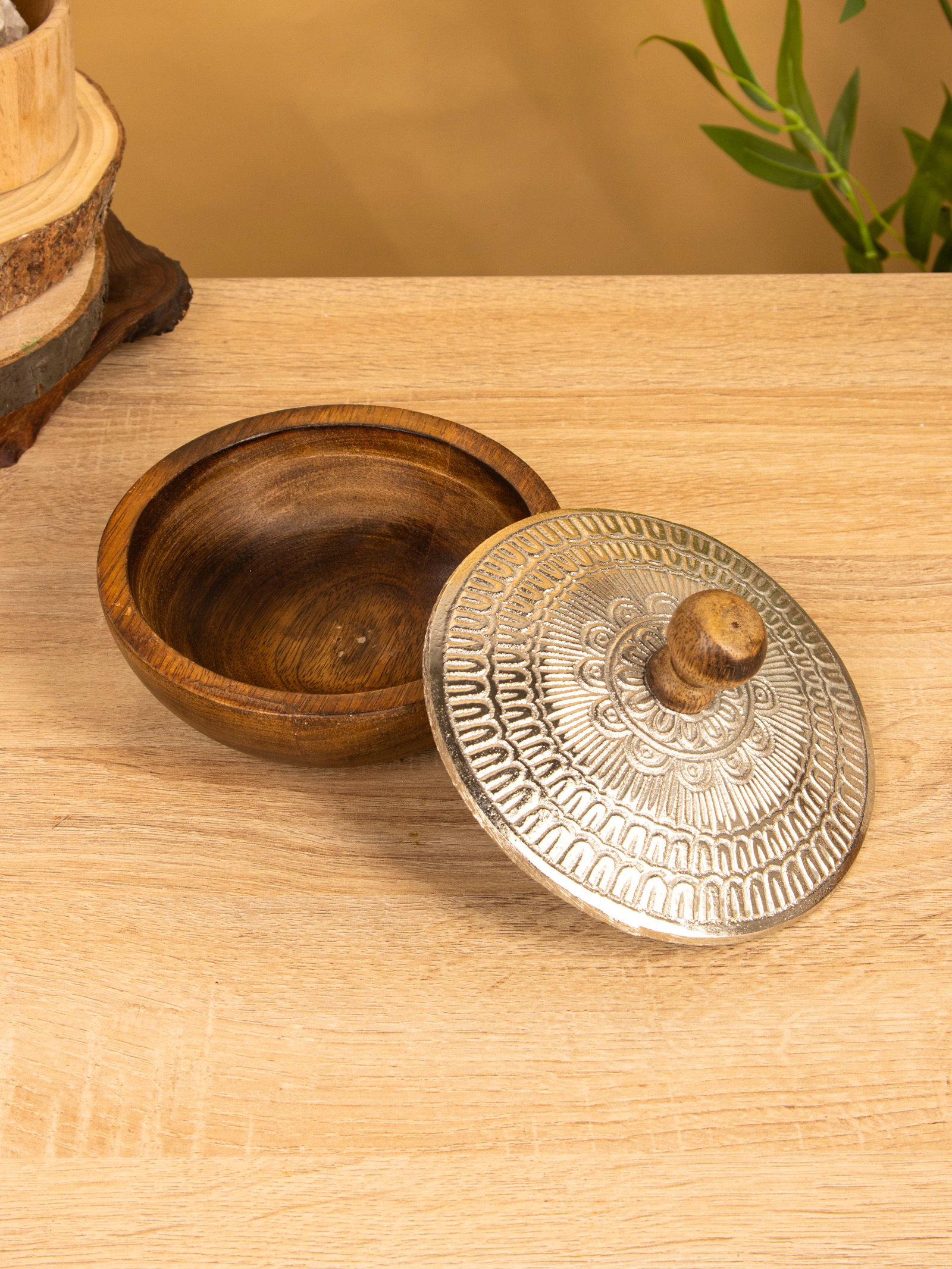 Сахарница "Алюм" 15х15х11 см, алюминий, дерево, 15x15x11 см., Индия