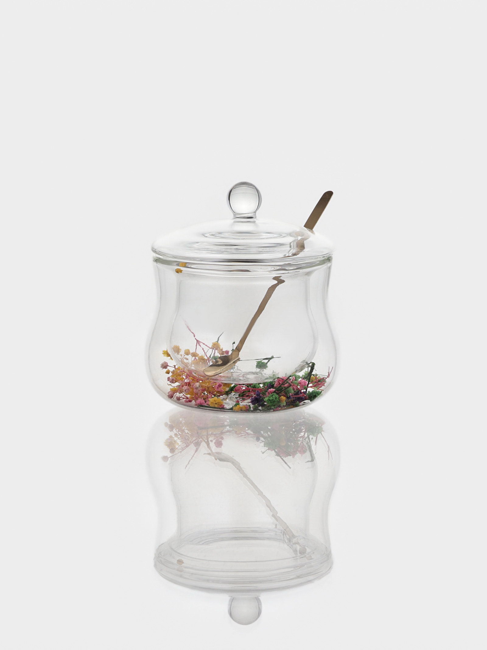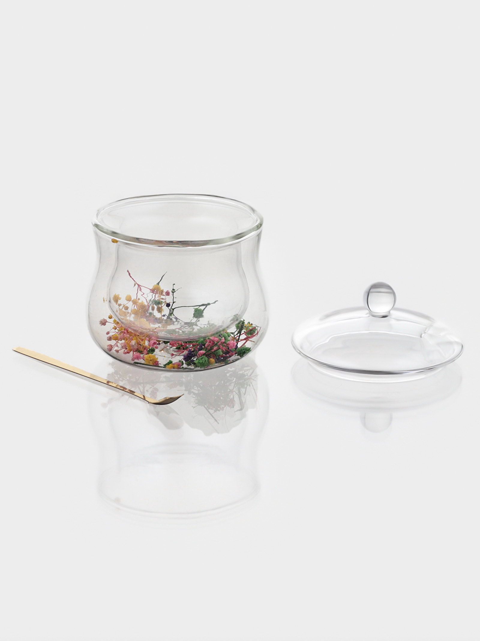 Сахарница с двойными стенками "Флора", 300 мл, 11x12 см, с сухоцветами, с ложкой, стекло, прозрачная, 11x11x12 см., Китай