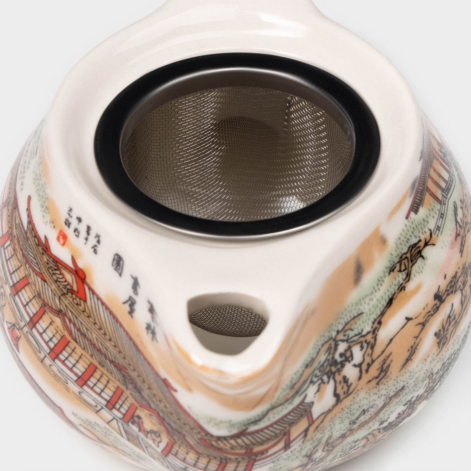 Чайник заварочный с металлическим ситом "Пейзаж", 200 мл, керамика, оранжевый, 9.5x14x8 см., Китай