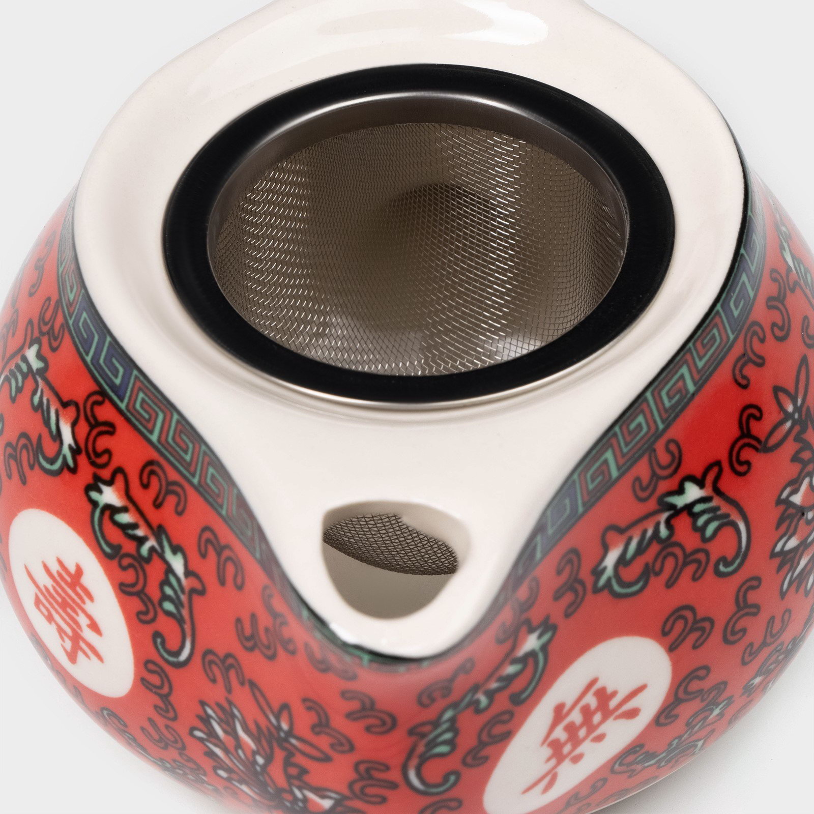 Чайник керамический заварочный с металлическим ситом "Лотос", 200 мл, цвет красный, 9.5x14x8 см., Китай
