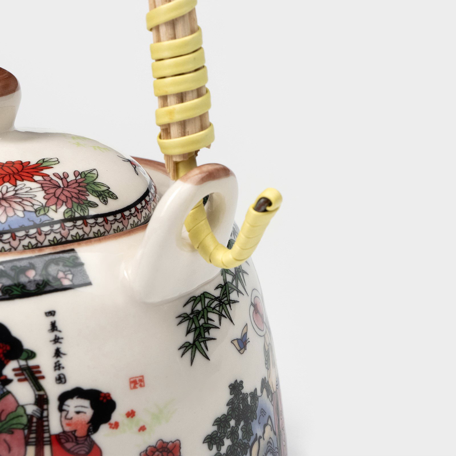 Размер упаковки: 12.5 x 10 x 14.5 см. Рисунок: Да Тематика: Азиатская Материал сита: Металл Материал чайника: Керамика tnved: 6912002600 Комплектация: Сито Набор: Нет Можно мыть в посудомоечной машине: Нет Цвет: Разноцветный Материал крышки: Керамика Матовая поверхность: Нет Запрет реализации по сегментам: 00000000485 Заварочный чайник "Беседа" это сочетание уюта, стиля и функциональности для настоящих ценителей чая. Объёмом 600 мл, он подходит как для утреннего кофе, так и для долгих вечерних чаепитий. Керамическое тело равномерно сохраняет тепло, а встроенный металлический фильтр удобен при заваривании листового чая. Особенности