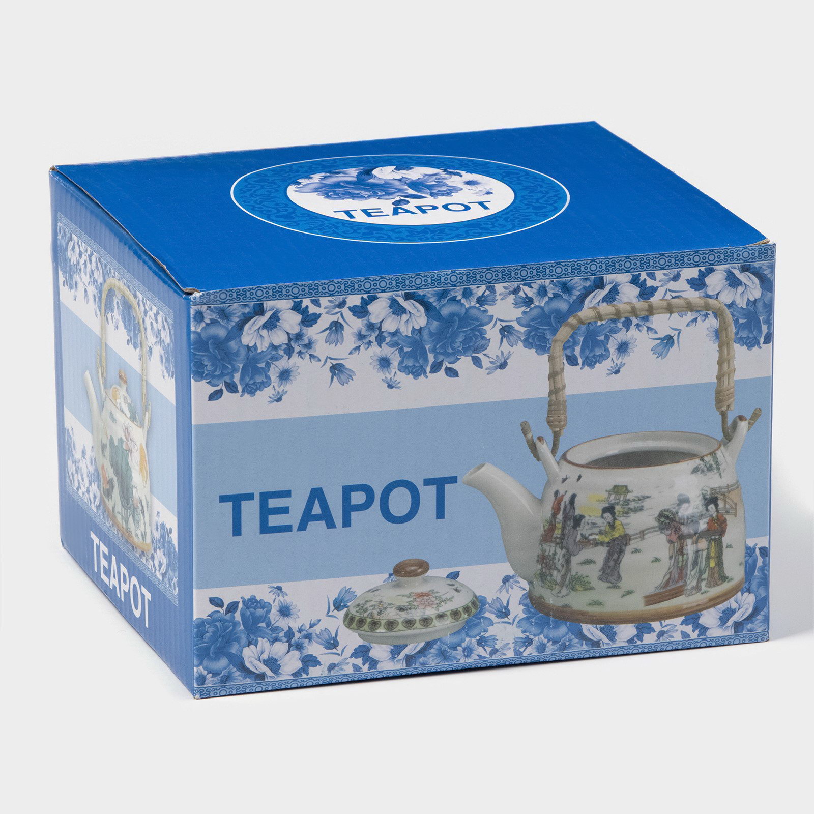 Чайник керамический заварочный с металлическим ситом "Беседа", 600 мл, 12x16x9.5 см., Китай