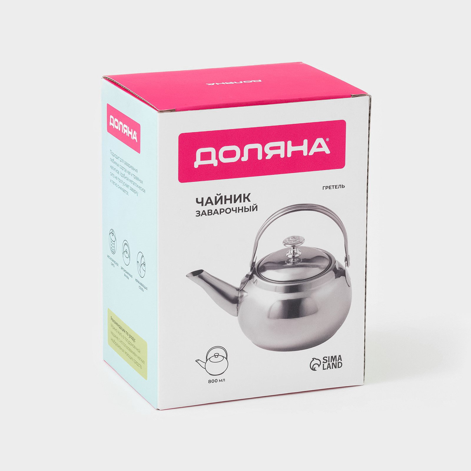 Заварочный чайник "Гретель", 800 мл, металлическое сито, нержавеющая сталь, хромированный, 12x17.5x11 см., Доляна, Китай
