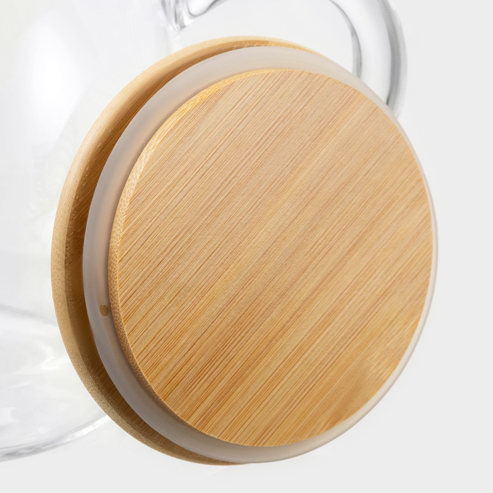 Чайник заварочный с бамбуковой крышкой "Эко. Бабл", 800 мл, 22x12.5x15 см, металлический фильтр, стекло, 12.5x22x15 см., Китай