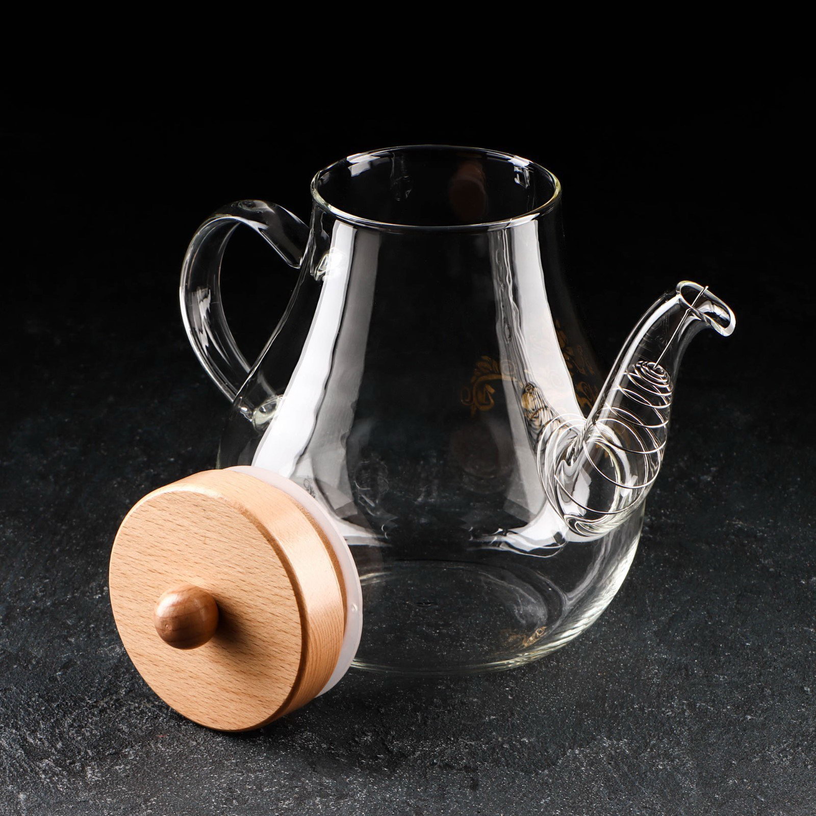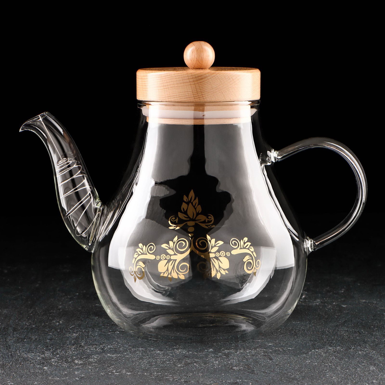 Чайник стеклянный заварочный с бамбуковой крышкой и металлическим фильтром "Эко. Восток", 1.2 л, 20x12.5x17 см, 12.5x20x17.5 см., Китай