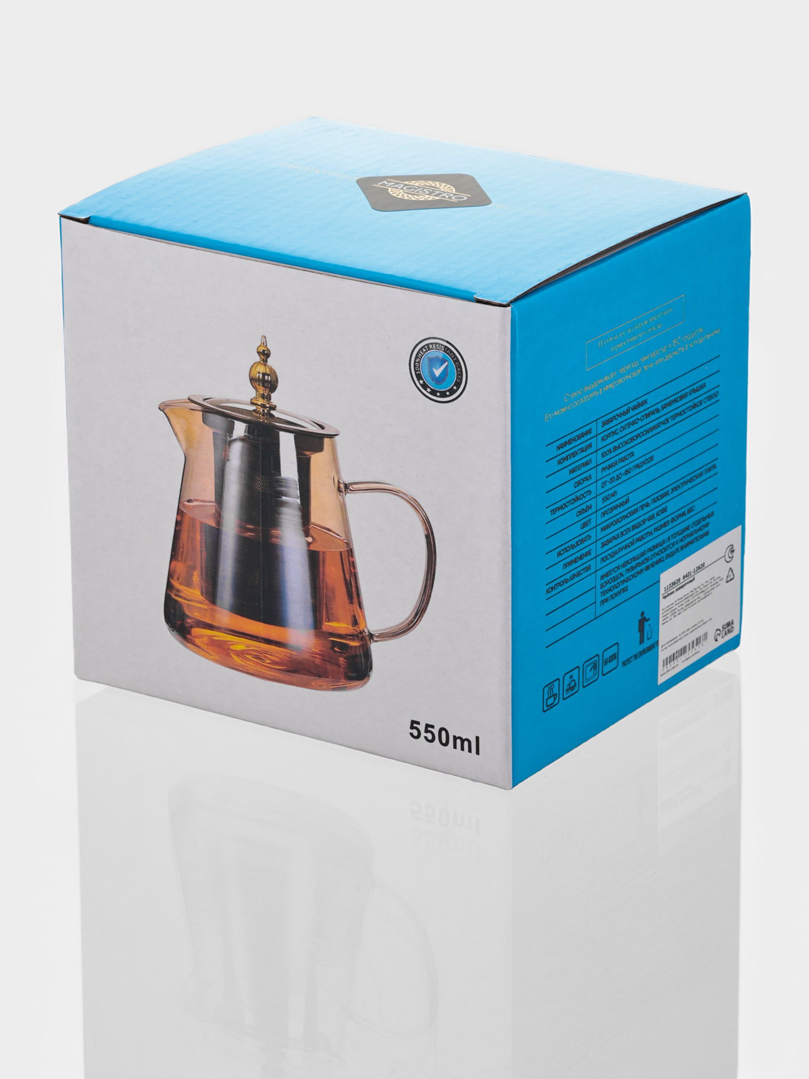 Чайник стеклянный заварочный с металлическим ситом "Эгла", 550 мл, 10x14x12 см., Magistro, Китай