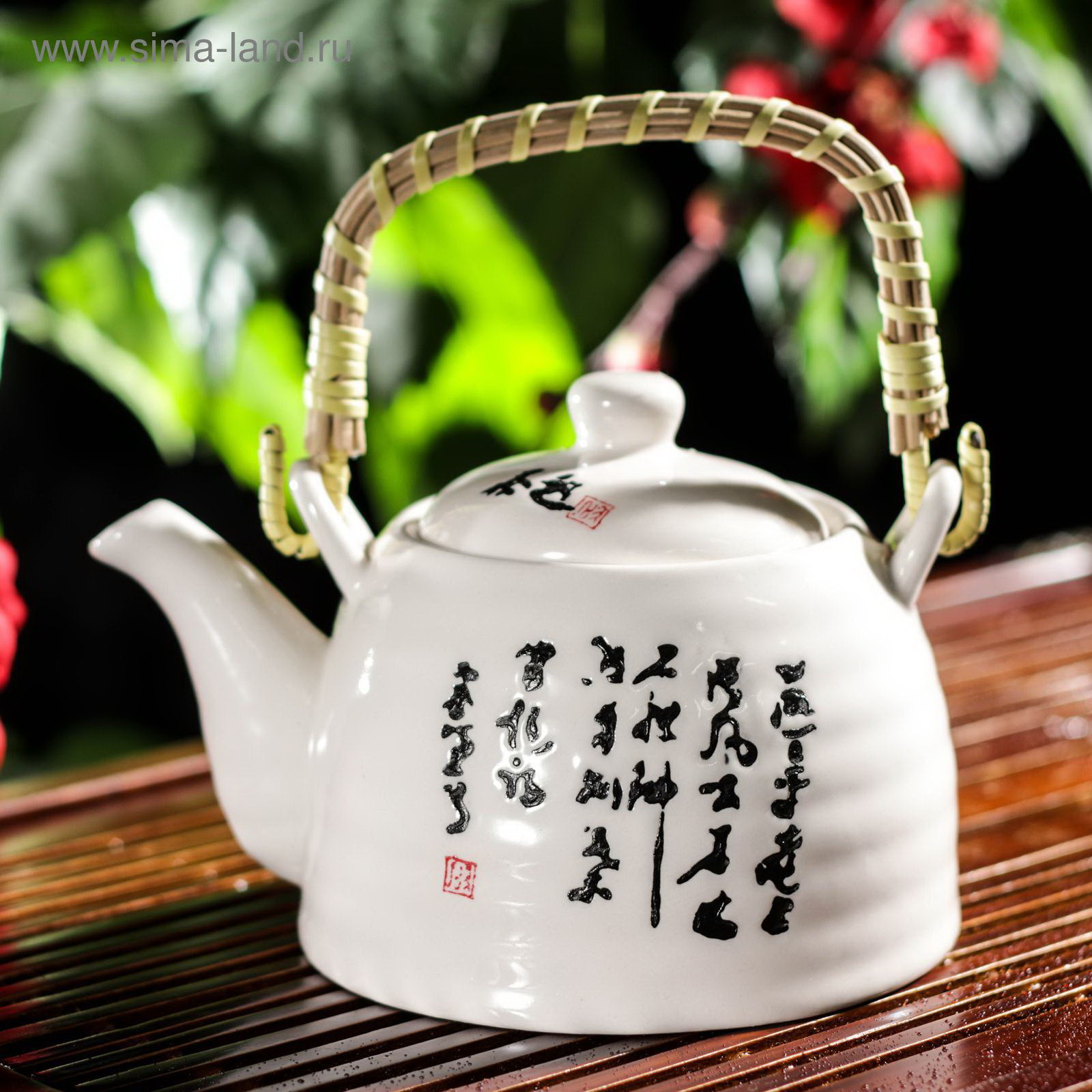 Чайник керамический заварочный "Иероглифы", 600 мл, с металлическим ситом, 12x16x10.5 см., Китай