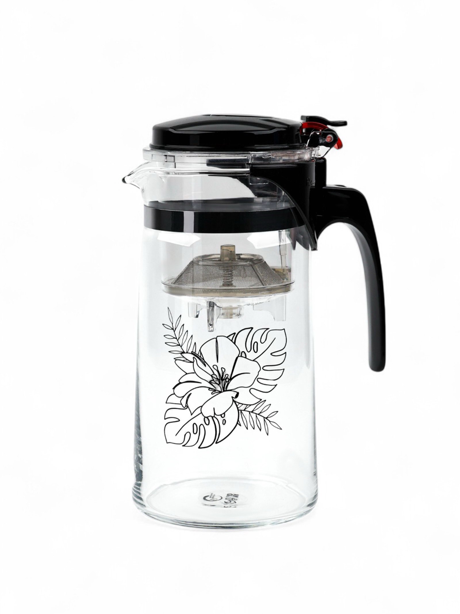 Чайник заварочный стеклянный "Цветы", 900 мл, 12x18.5x9 см., Дорого внимание, Китай