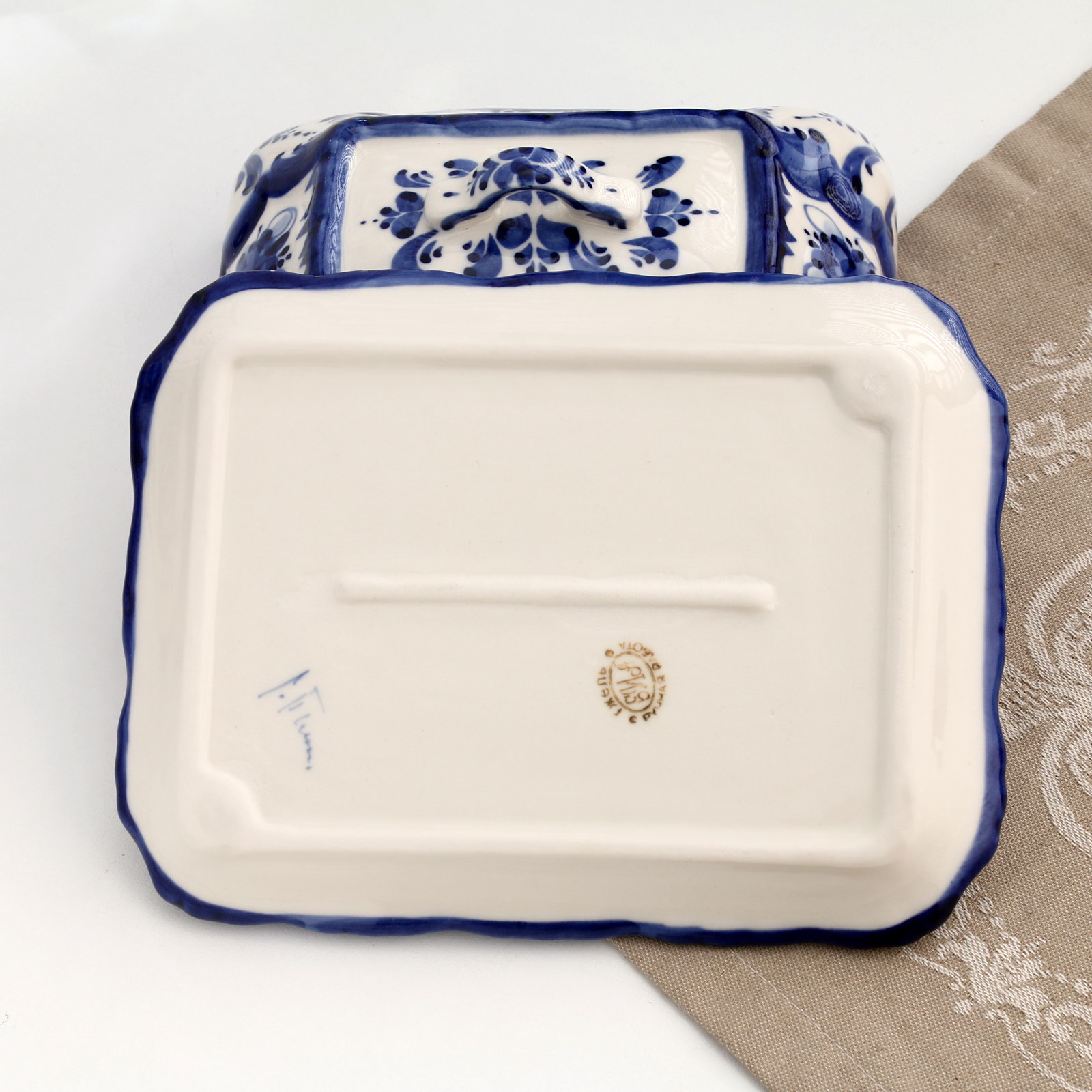 Маслёнка прямоугольная гжель "Деликатес", бело-синий, фарфор, 12х18 см, Россия