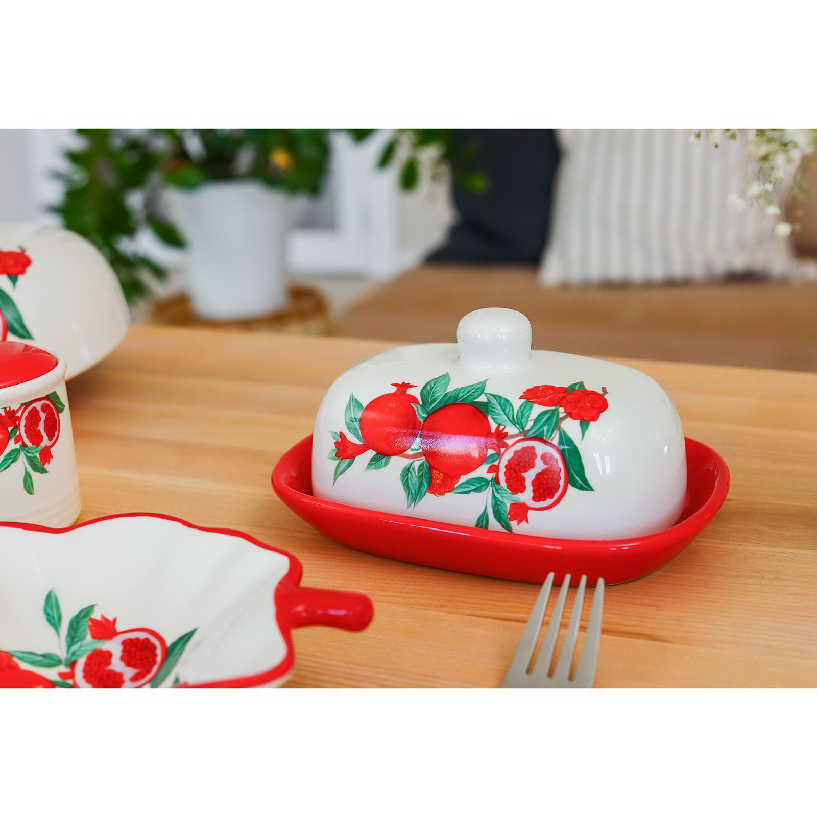 Маслёнка "Гранат", 17.2x12.4x8.5 см, цвет красный и белый, 12.4x17.2x8.5 см., Доляна, Китай