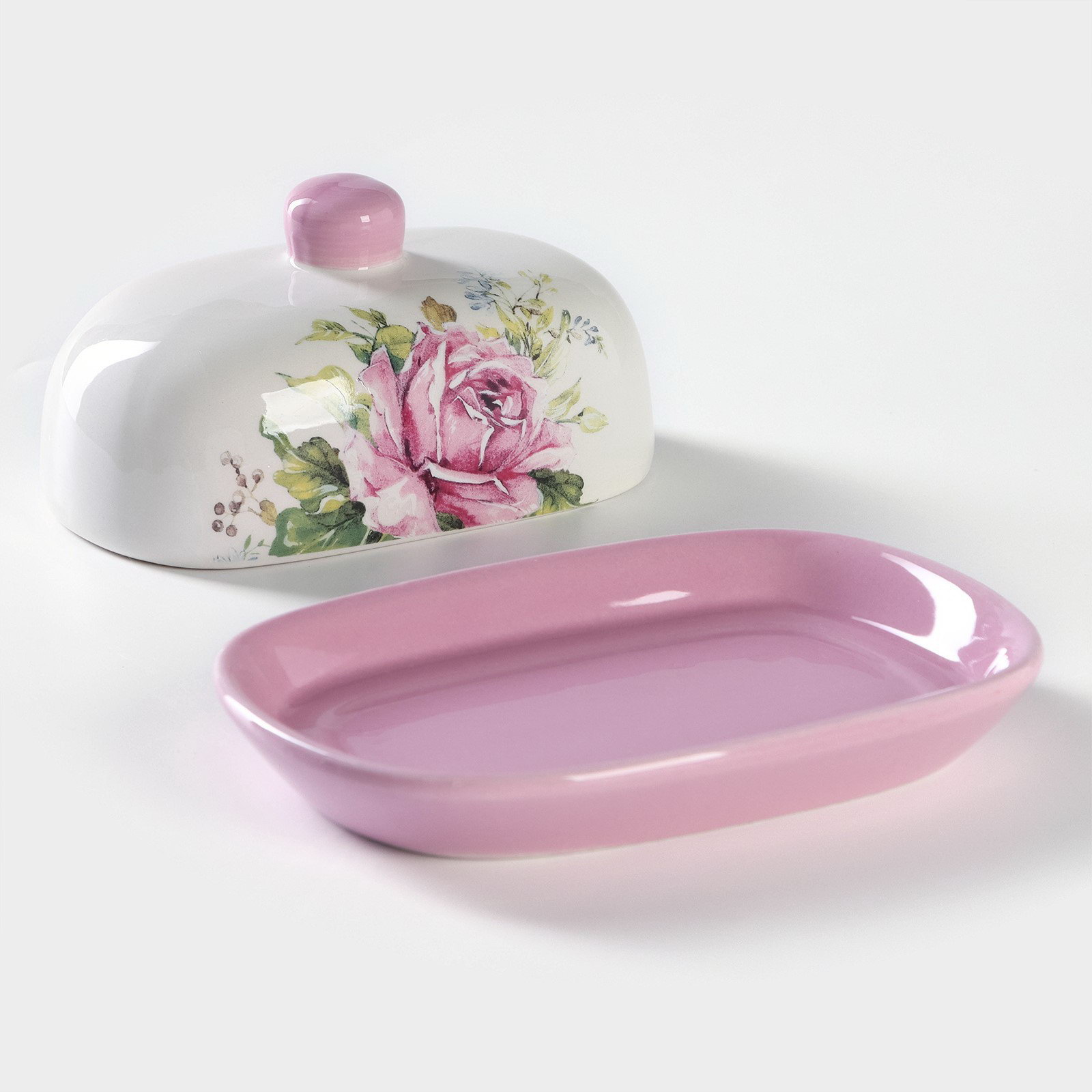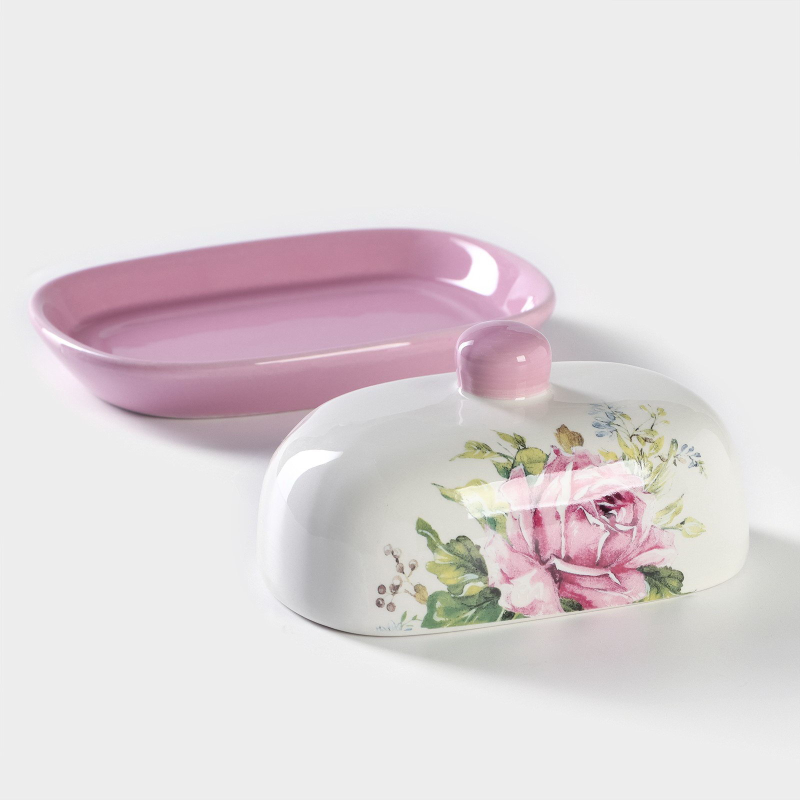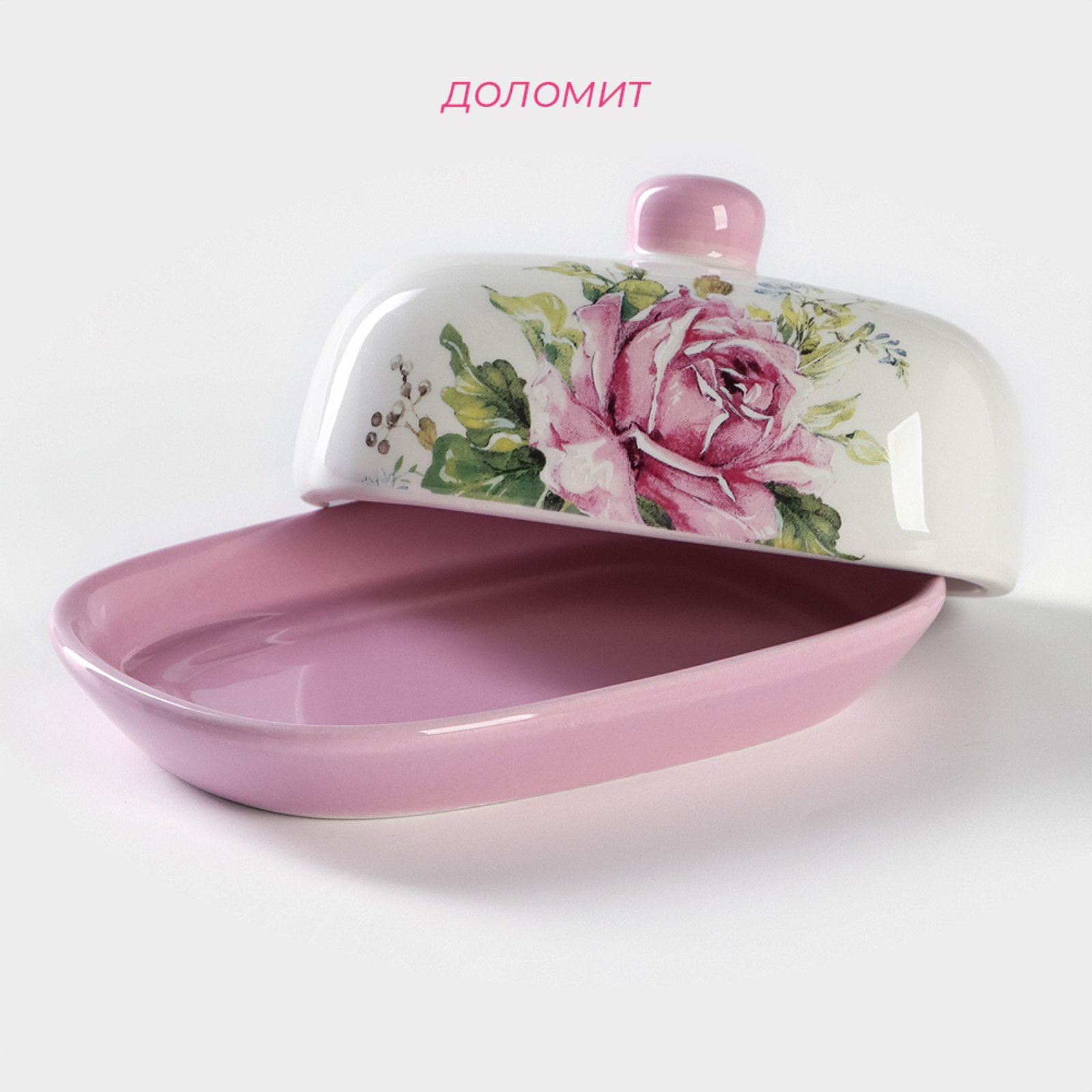 Маслёнка "Роза", 17.2x12.4x8.5 см, цвет розовый и белый, 12.4x17.2x8.5 см., Доляна, Китай