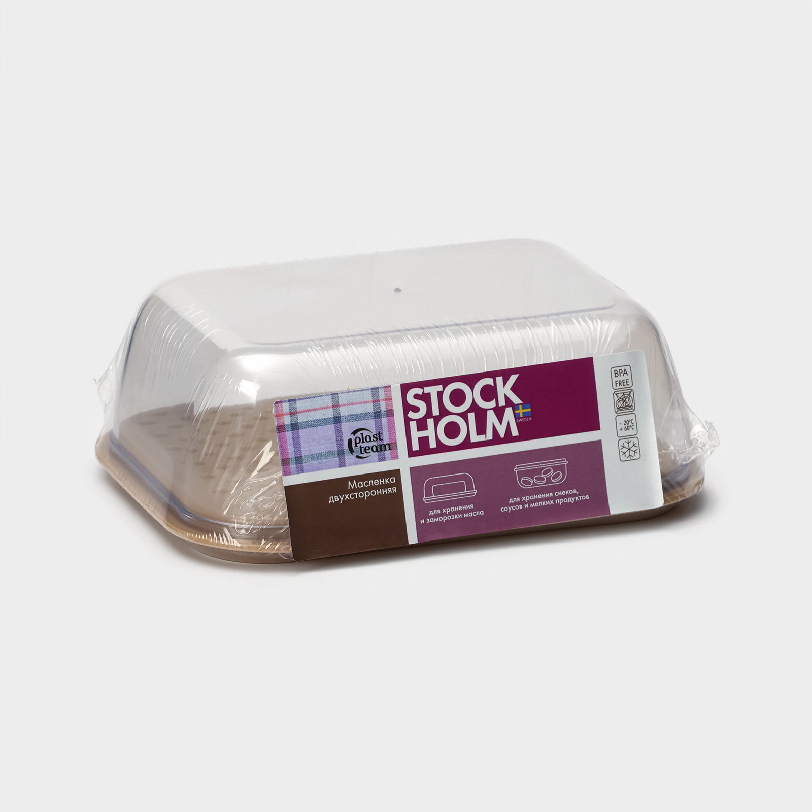 Маслёнка двухсторонняя STOCKHOLM, пластик, 14.5x11x5.5 см, шоколадная, мокко, Россия