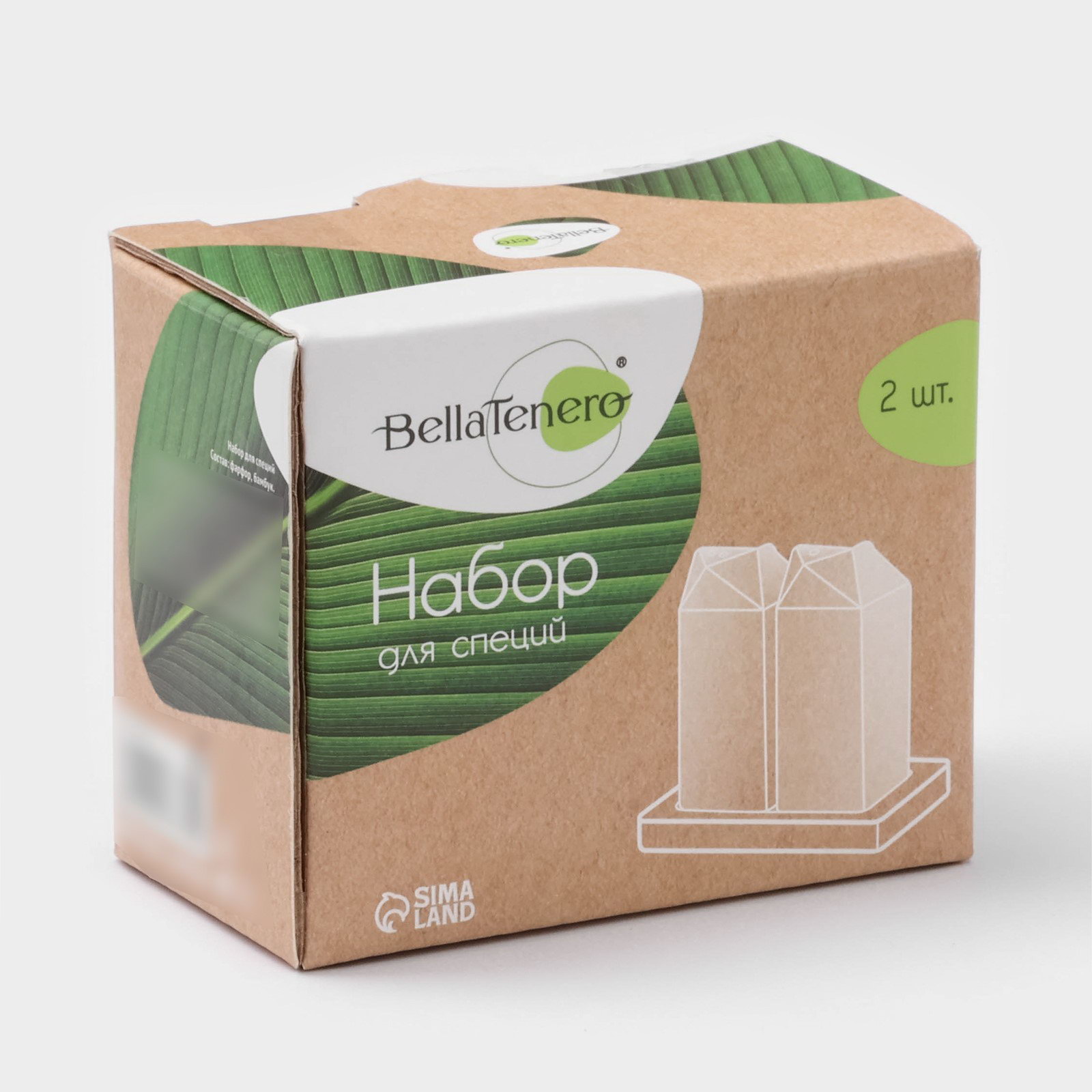 Набор для специй "Пакет", 3 предмета: солонка, перечница, подставка, фарфор, белый, 6x9x9 см., BellaTenero, Китай