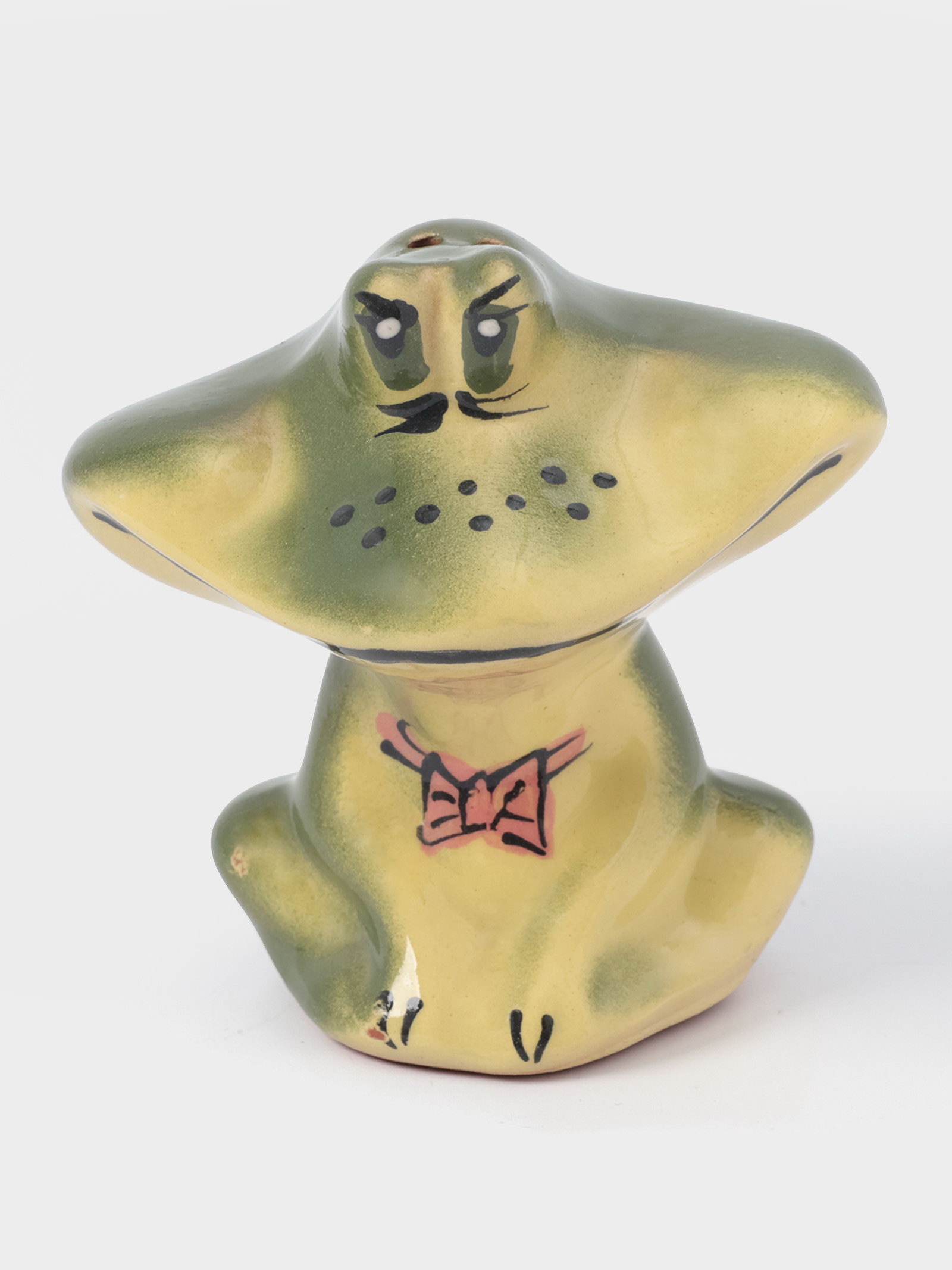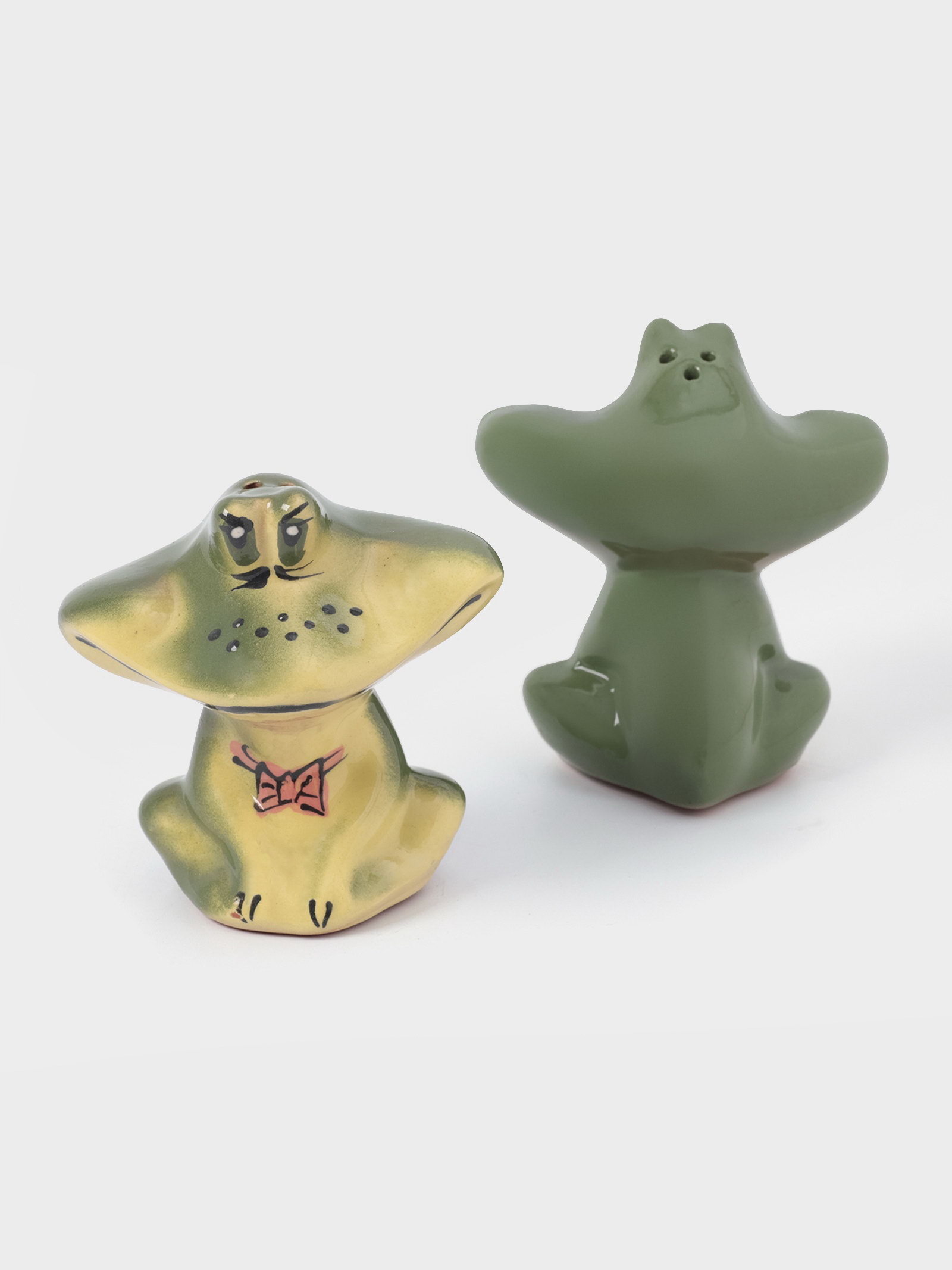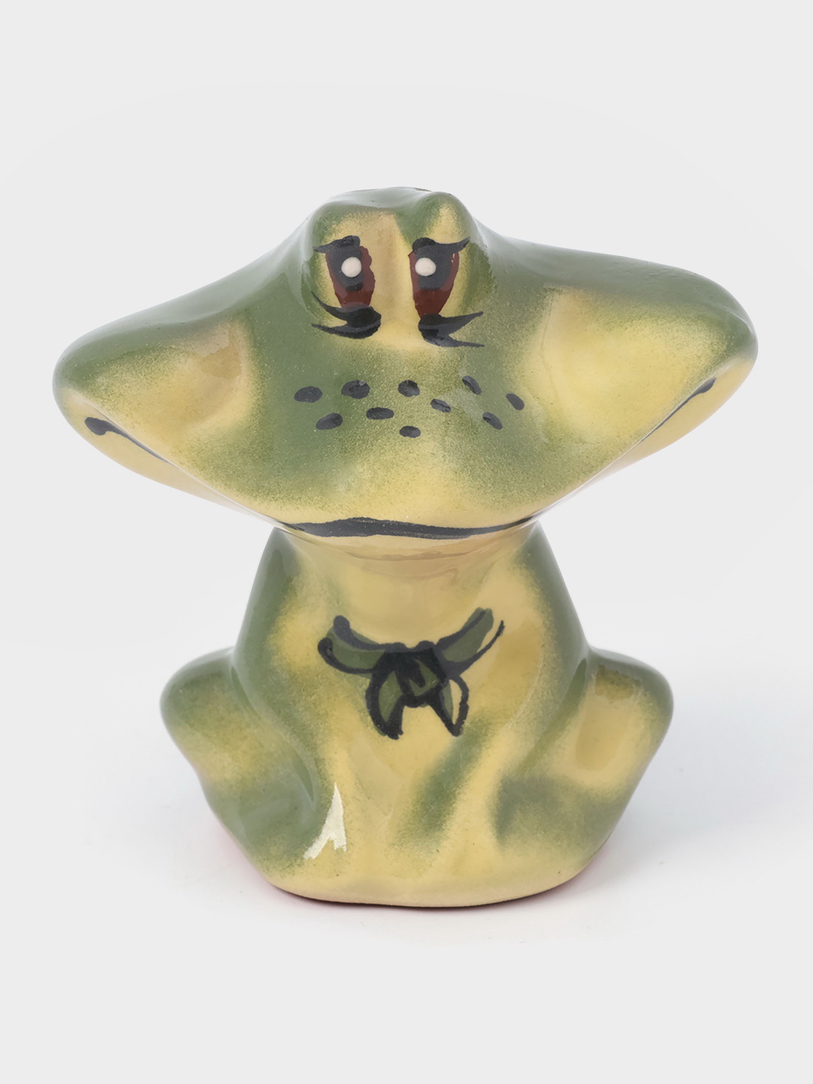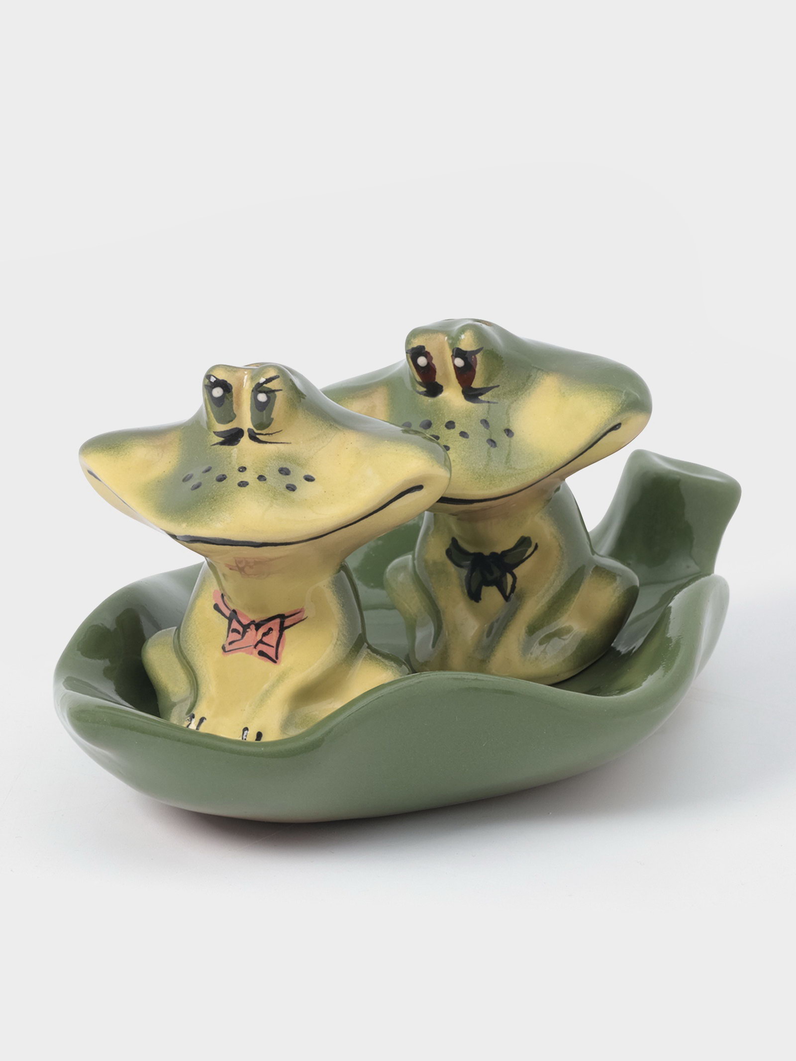 Набор для специй "Лягушки", 2 предмета на подставке: солонка, перечница, зелёная, Кунгурская керамика, Россия