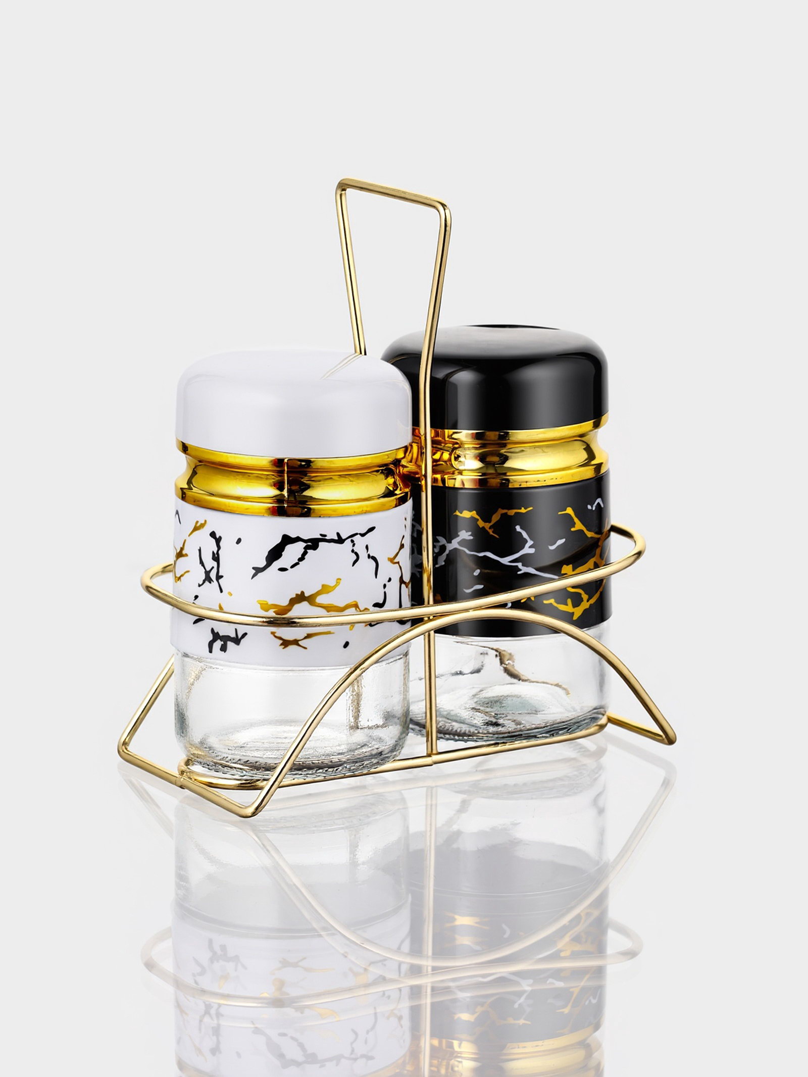 Набор для специй S&P.Marble, 2 шт., на подставке, стекло, белый, чёрный, 6.8x12.5x13.5 см., Китай