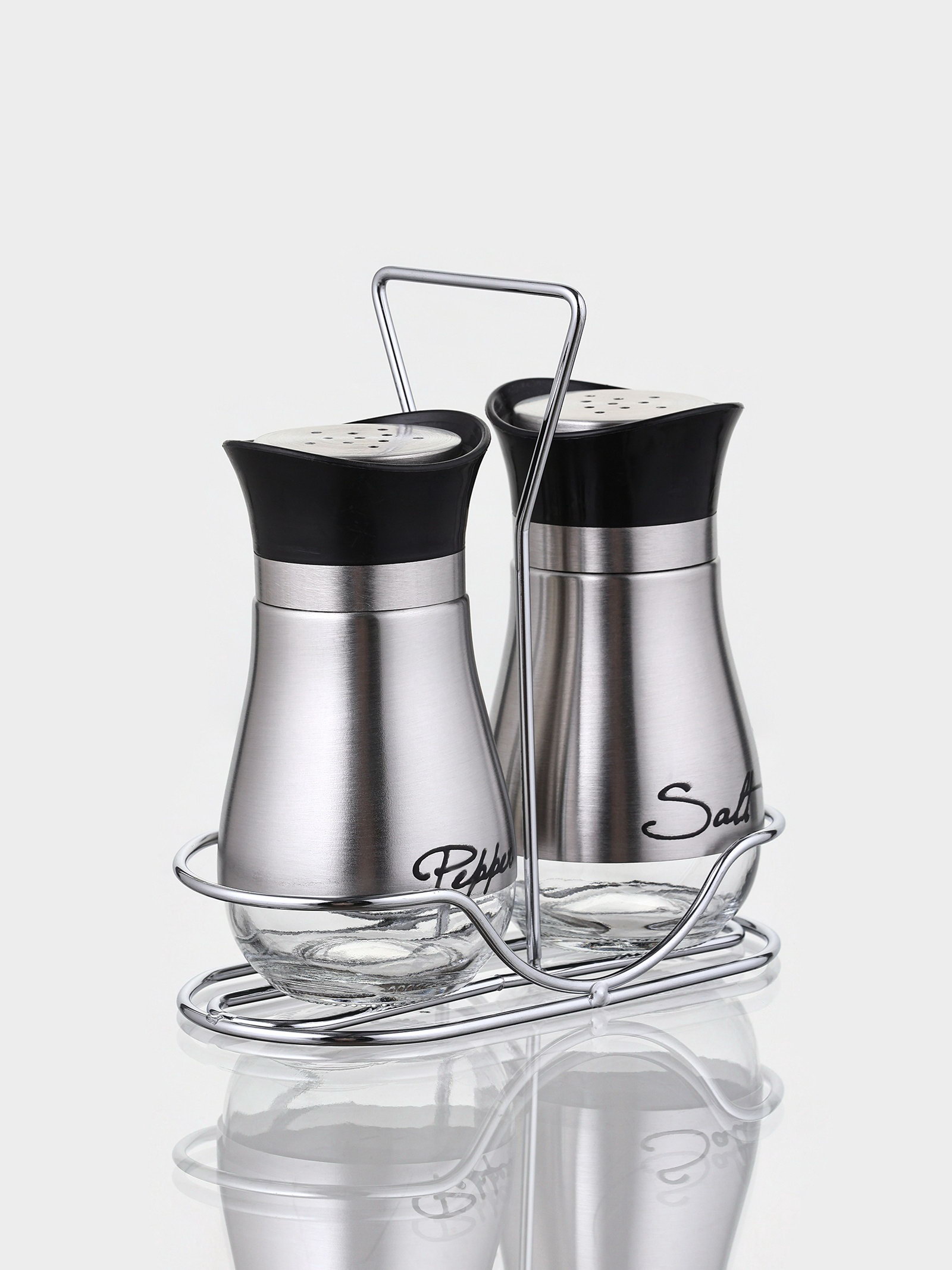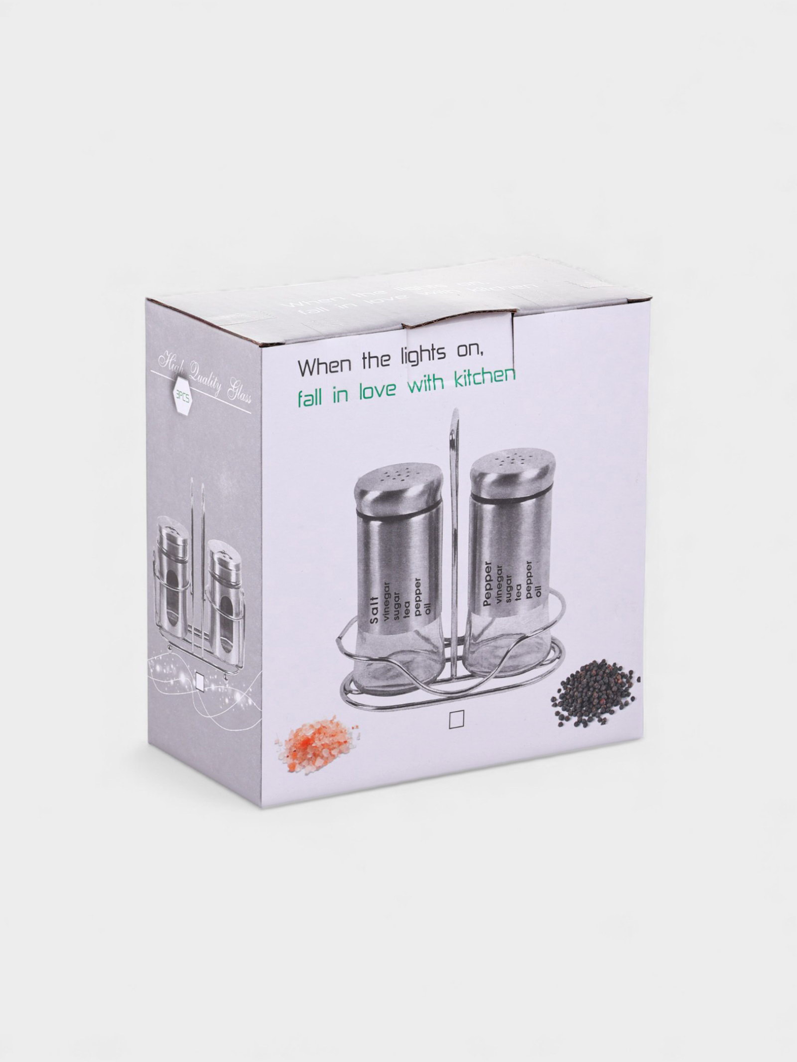Набор для специй "Сияние.Silver", 2 шт., на подставке, стекло, серебристый, 7x13.5x14 см., Китай