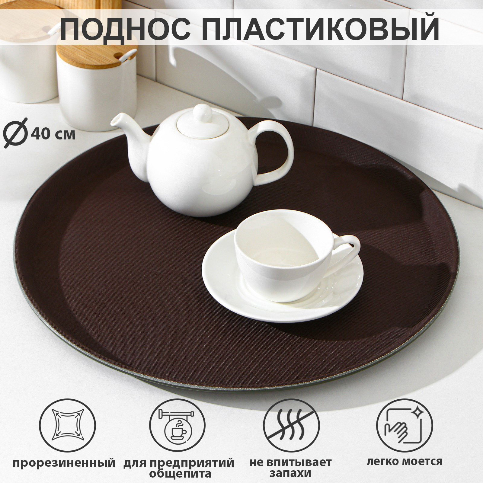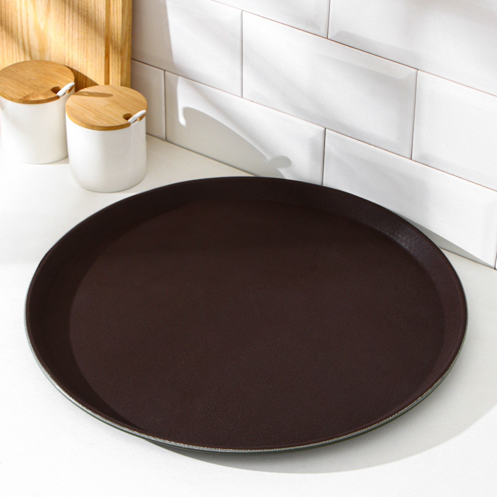 Поднос прорезиненный, d=40 см, коричневый, 40х40х2 см., Hanna Knovell, Китай