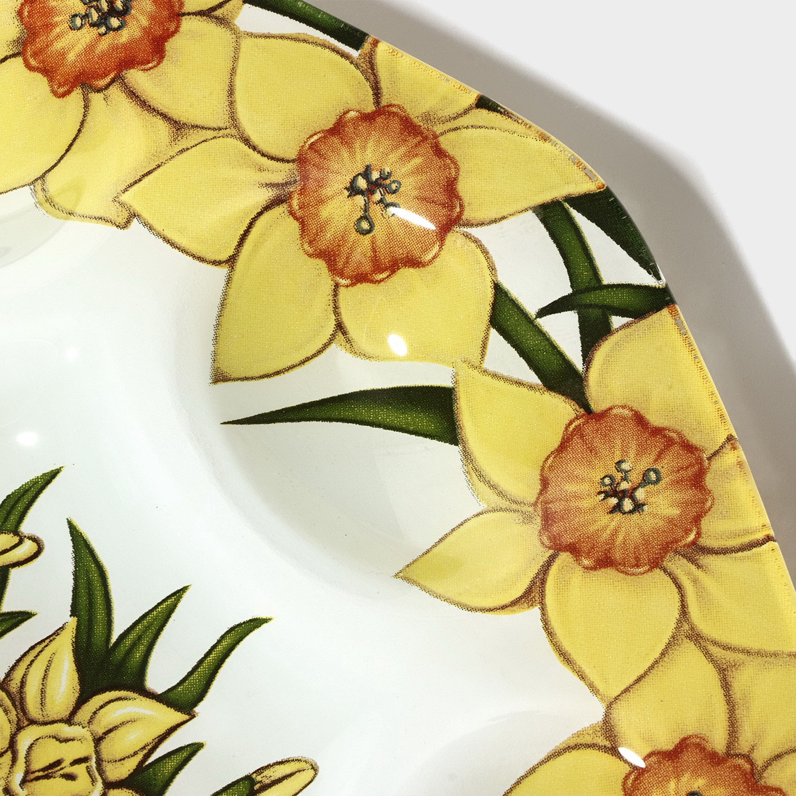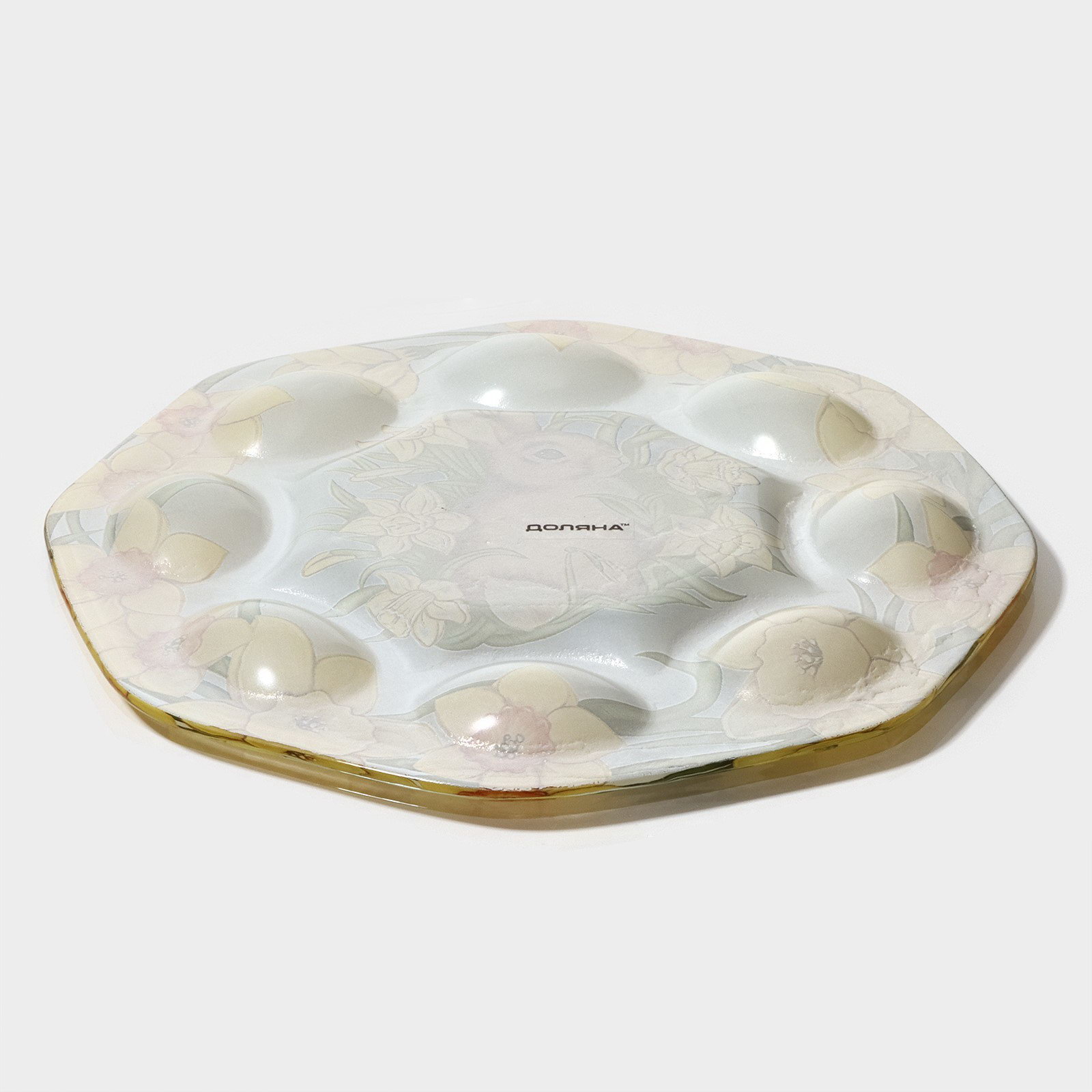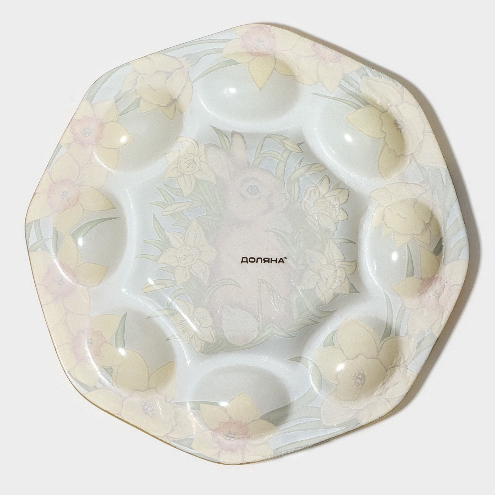 Подставка для яиц "Кролик в цветах", 8 ячеек, 22x22 см, стекло, жёлтая, 22х22х1 см., Доляна, Китай
