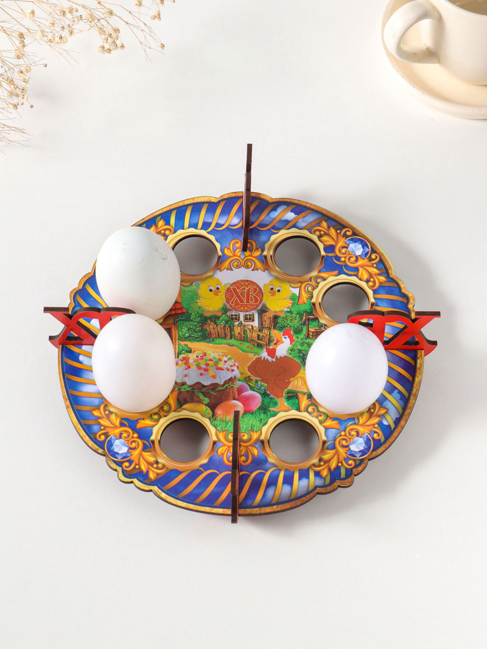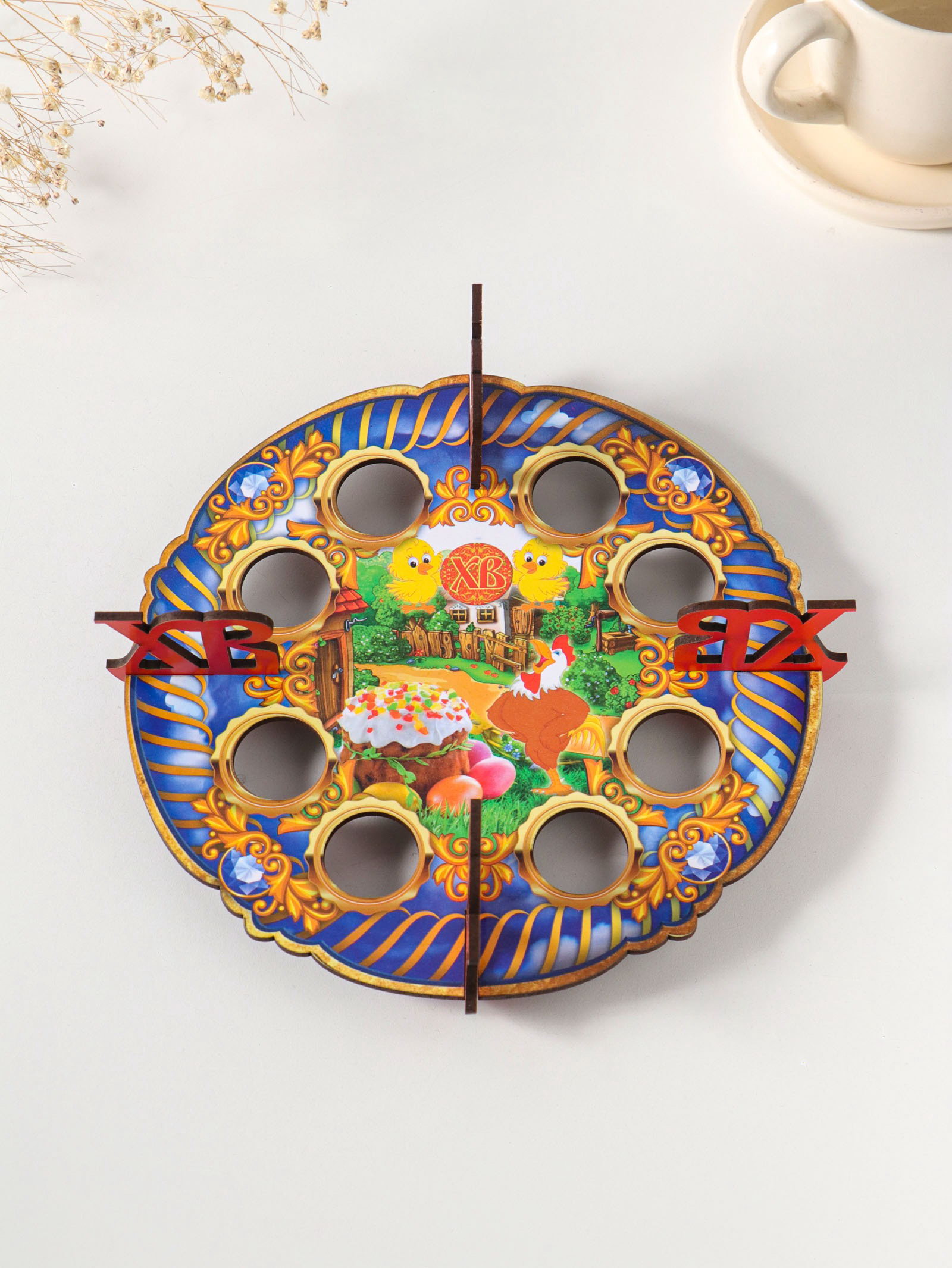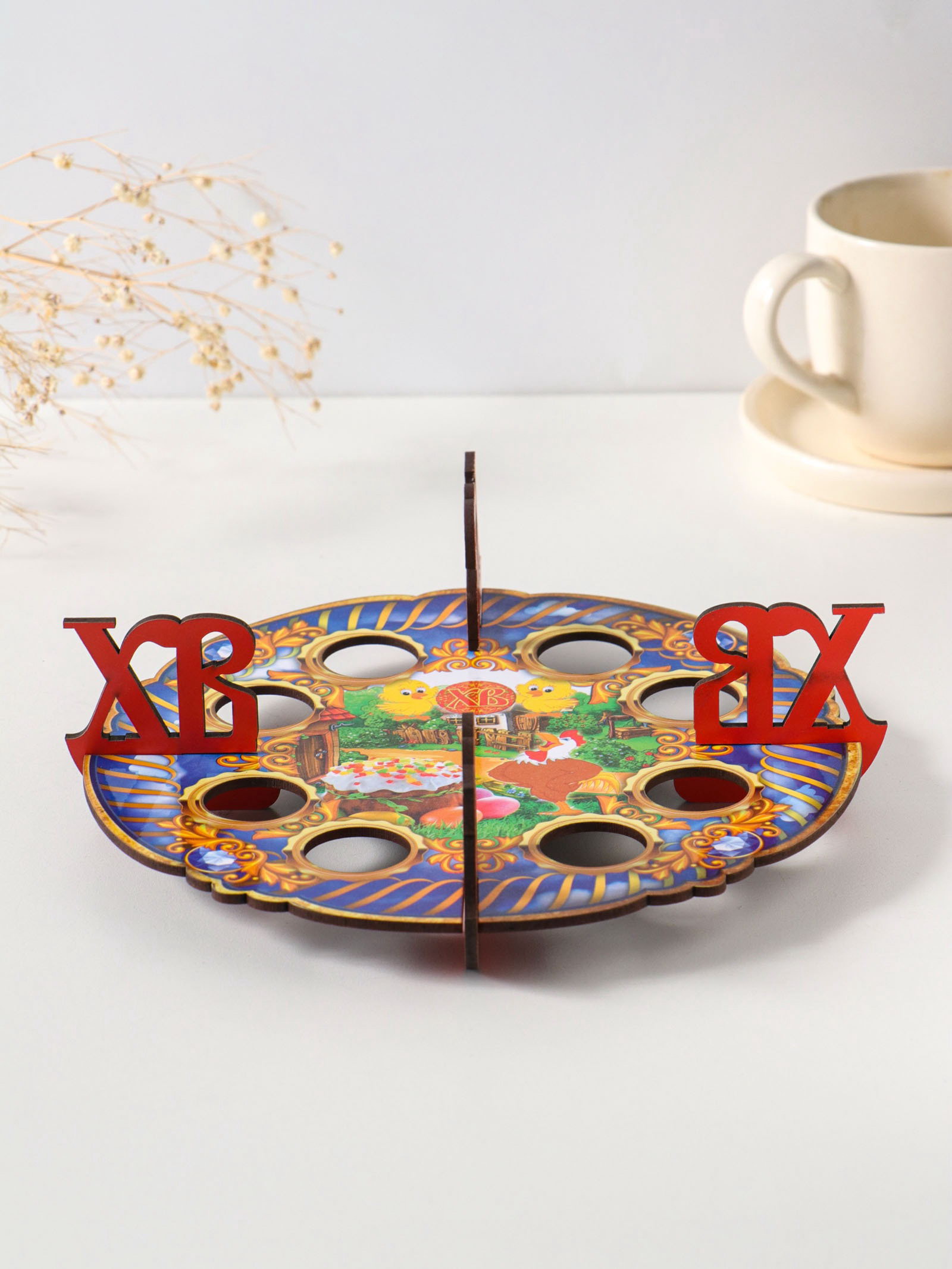 Тематика: Пасхальная, Птицы Размер упаковки: 20 x 0.3 x 20 см. tnved: 4420190000 Температурное ограничение: Нет Количество ячеек: 8 Можно мыть в посудомоечной машине: Нет Цвет: Разноцветный Рисунок: Да Эта красочная подставка для пасхальных яиц станет центром праздничного стола. Восемь аккуратных ячеек надежно удержат крашенки, создавая яркую и завершенную композицию. Изделие выполнено из плотного ХДФ с интересным рисунком в народном стиле. Особенности