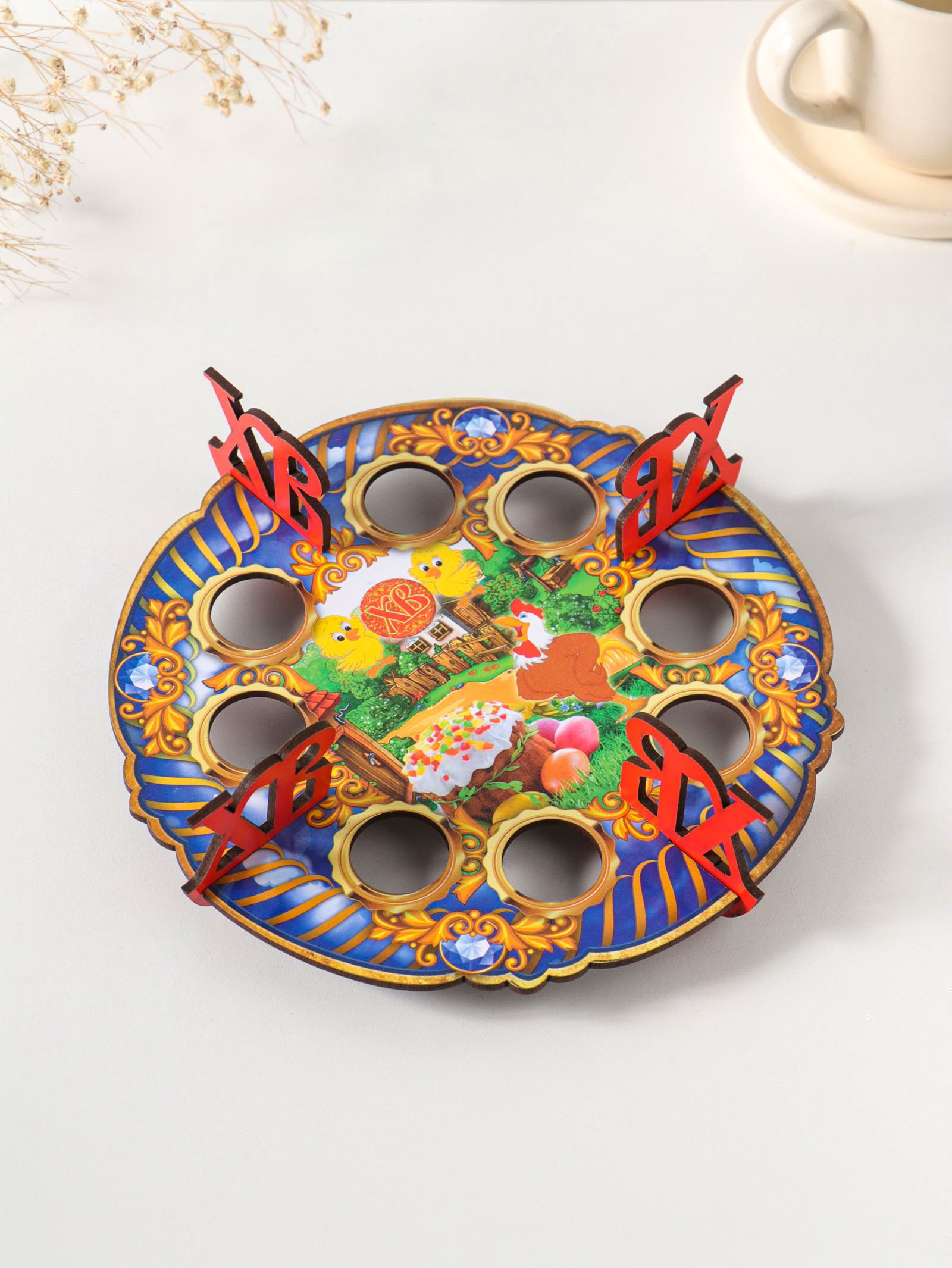 Создайте пасхальное настроение Традиционный образ петушка и птиц привносит в дом атмосферу весеннего праздника. Подставка не просто служит утилитарным целям она становится важным элементом декора, вокруг которого строится вся пасхальная композиция. Прочная конструкция позволяет использовать ее из года в год, превращая в любимый семейный атрибут встречи Светлого Воскресения. | ||