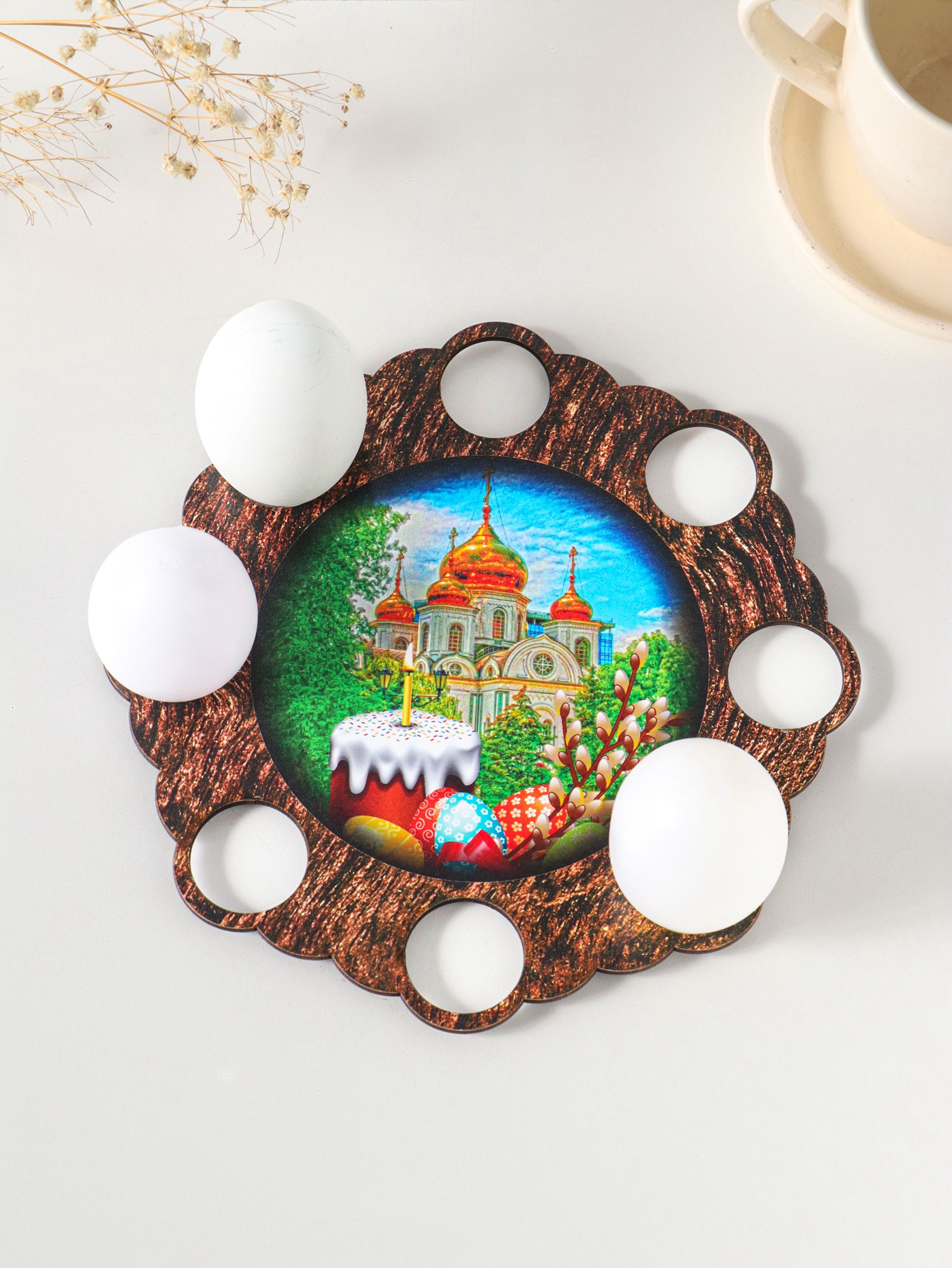 Тематика: Достопримечательности, Пасхальная Размер упаковки: 20 x 0.2 x 20 см. tnved: 4420190000 Температурное ограничение: Нет Количество ячеек: 8 Можно мыть в посудомоечной машине: Нет Цвет: Разноцветный Рисунок: Да Эта подставка для пасхальных яиц на ножках станет центром праздничного стола. Она создаёт особое настроение, превращая традиционное пасхальное угощение в яркую и нарядную композицию. Восемь ячеек надёжно удерживают крашенки, а устойчивое основание с декоративной юбкой скрывает пространство под кулич, делая сервировку завершённой и эстетичной. Особенности изделия