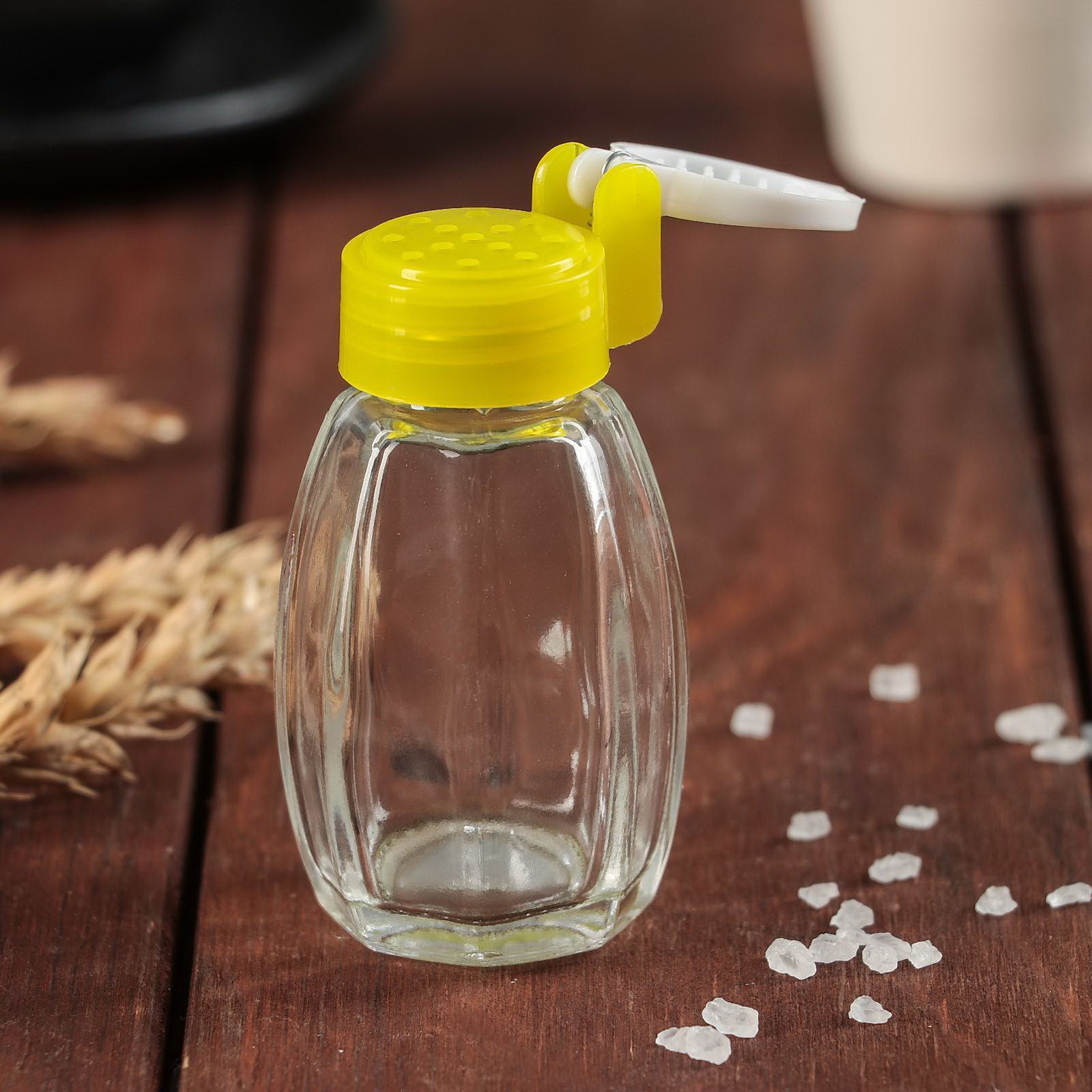 Солонка "Яркая", 30 мл, 3.5x7 см, стекло, МИКС, 3.5x3.5x8 см., Китай