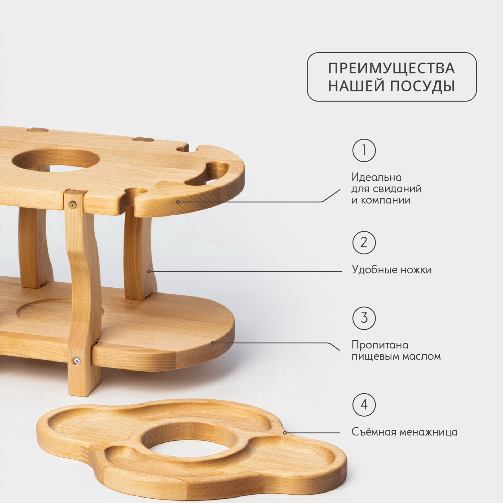Столик - поднос для вина со съёмной менажницей на 4 персоны 35x19x1.8 см, высота 21 см, дерево берёза, Adelica, Россия