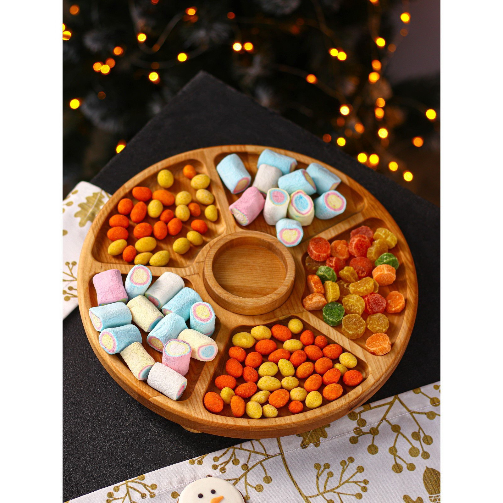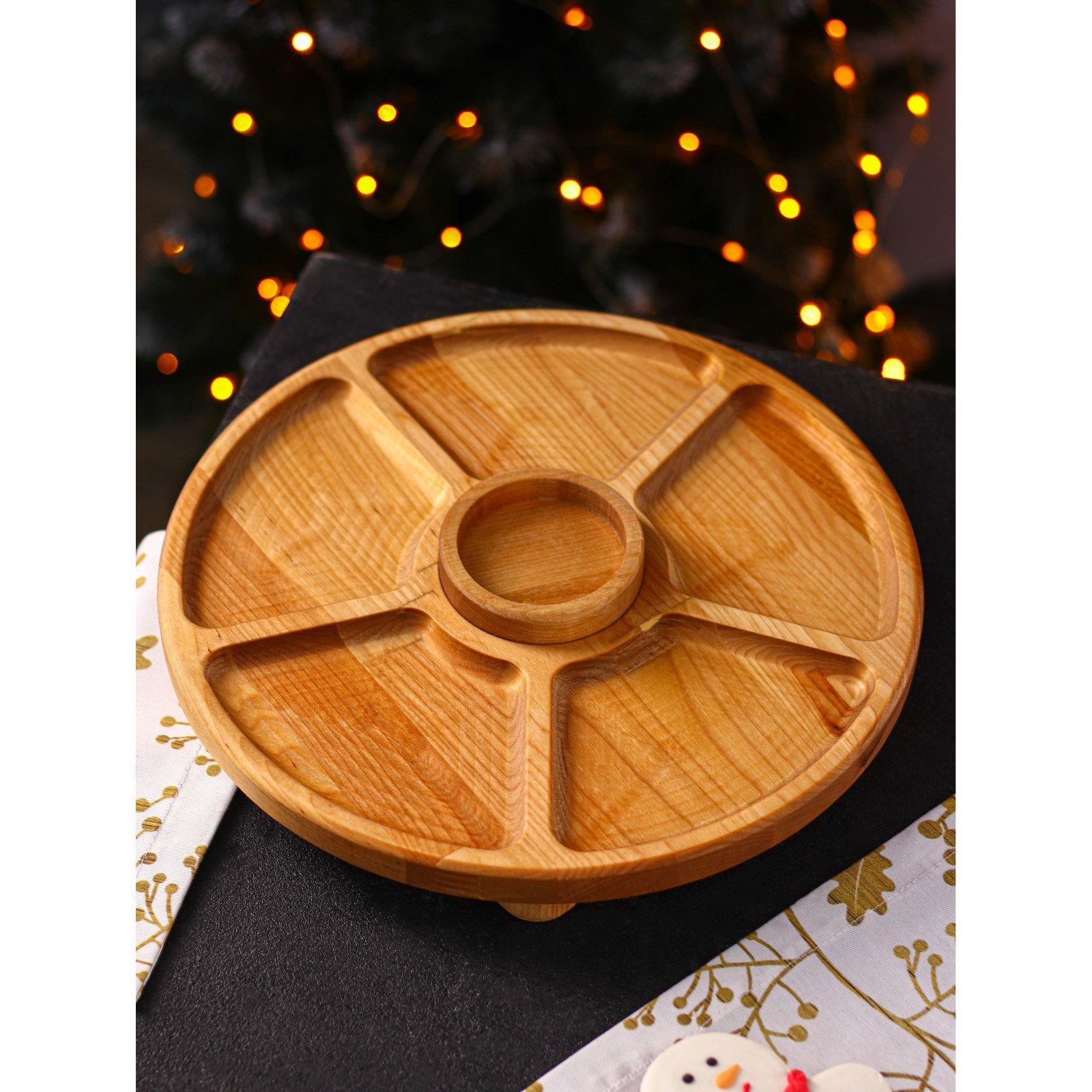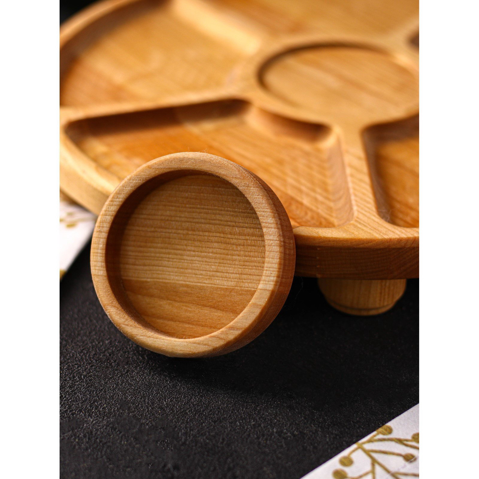 Менажница "Фортуна", 6 секций, на ножках с соусницей, d=30 см, 70 мл, дерево берёза, Adelica, Россия