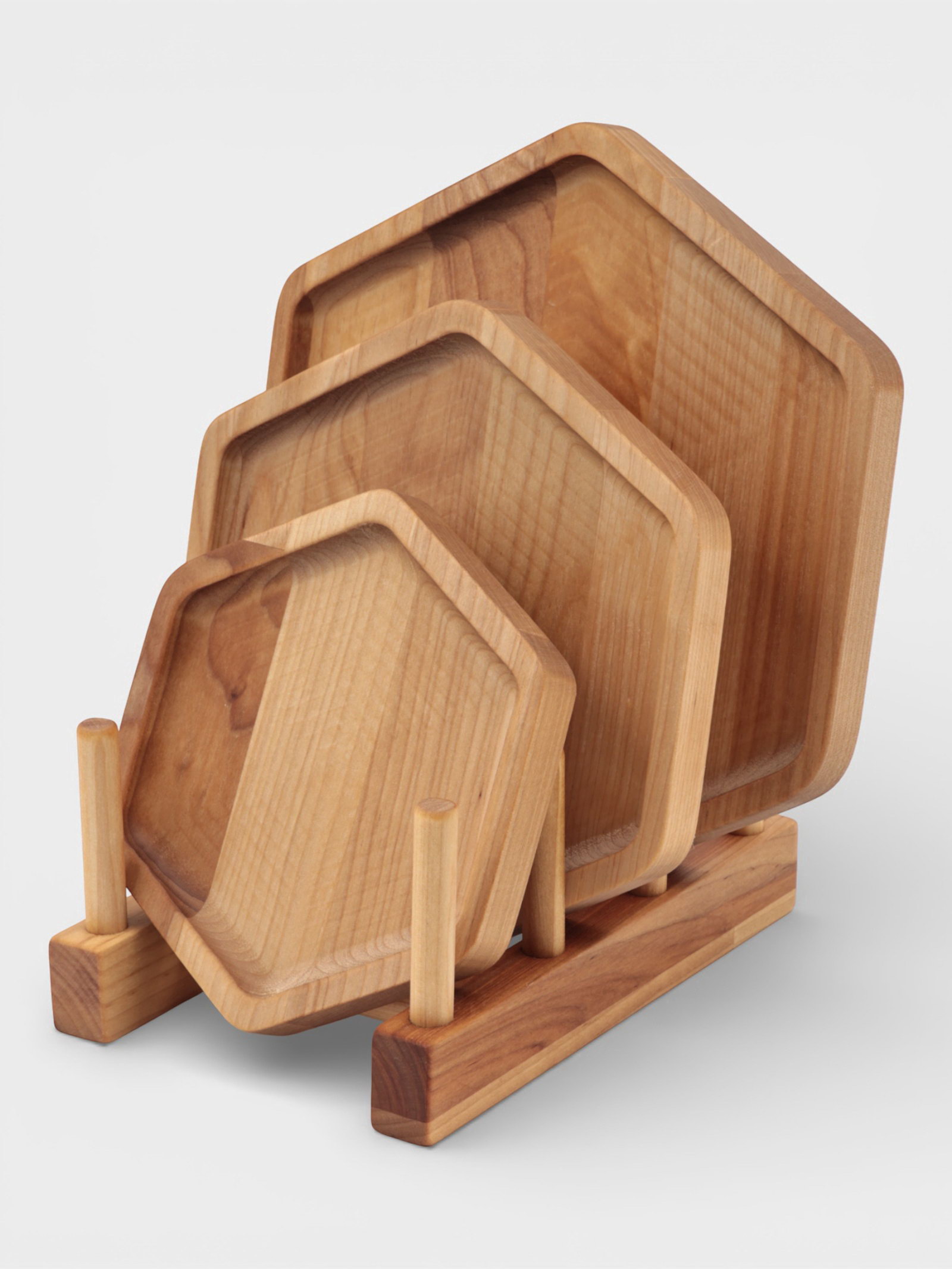 Подарочный набор посуды "Ромб", тарелки 3 шт., d=24 см, d=20 см, d=16 см, дерево берёза, Adelica, Россия