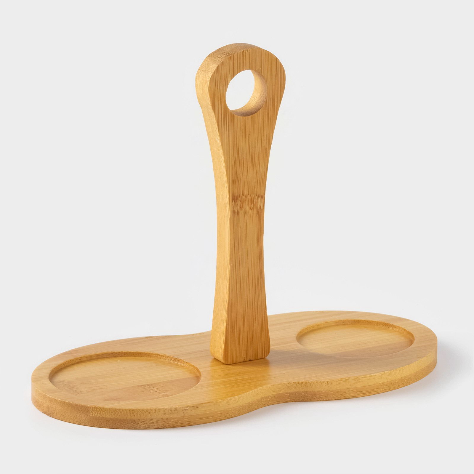 Набор фарфоровый сервировочный 4 предмета: молочник 250 мл, сахарница с крышкой 250 мл, ложка, бамбуковая подставка, белая, 9.5x19.5x9.5 см., BellaTenero, Китай