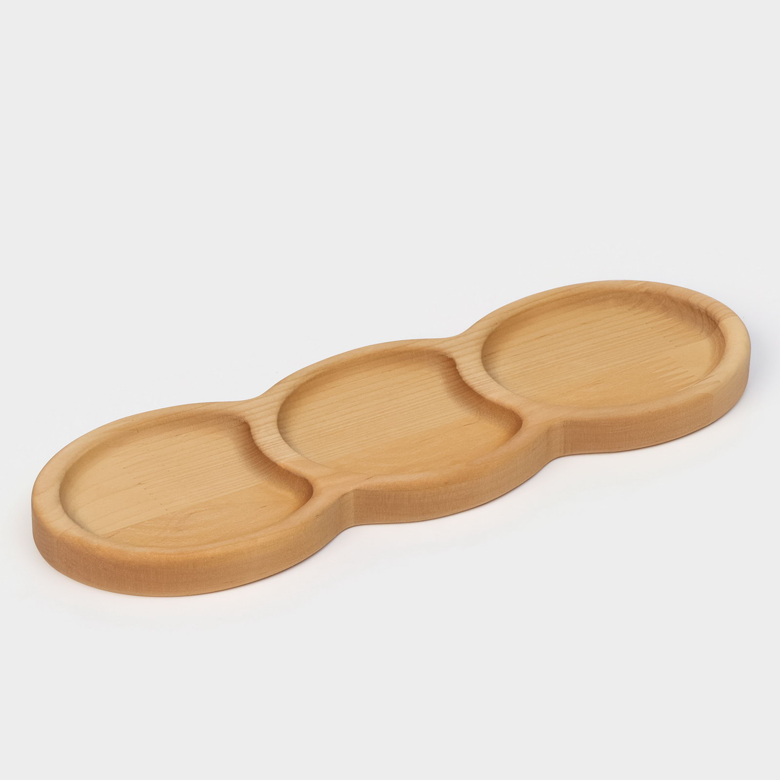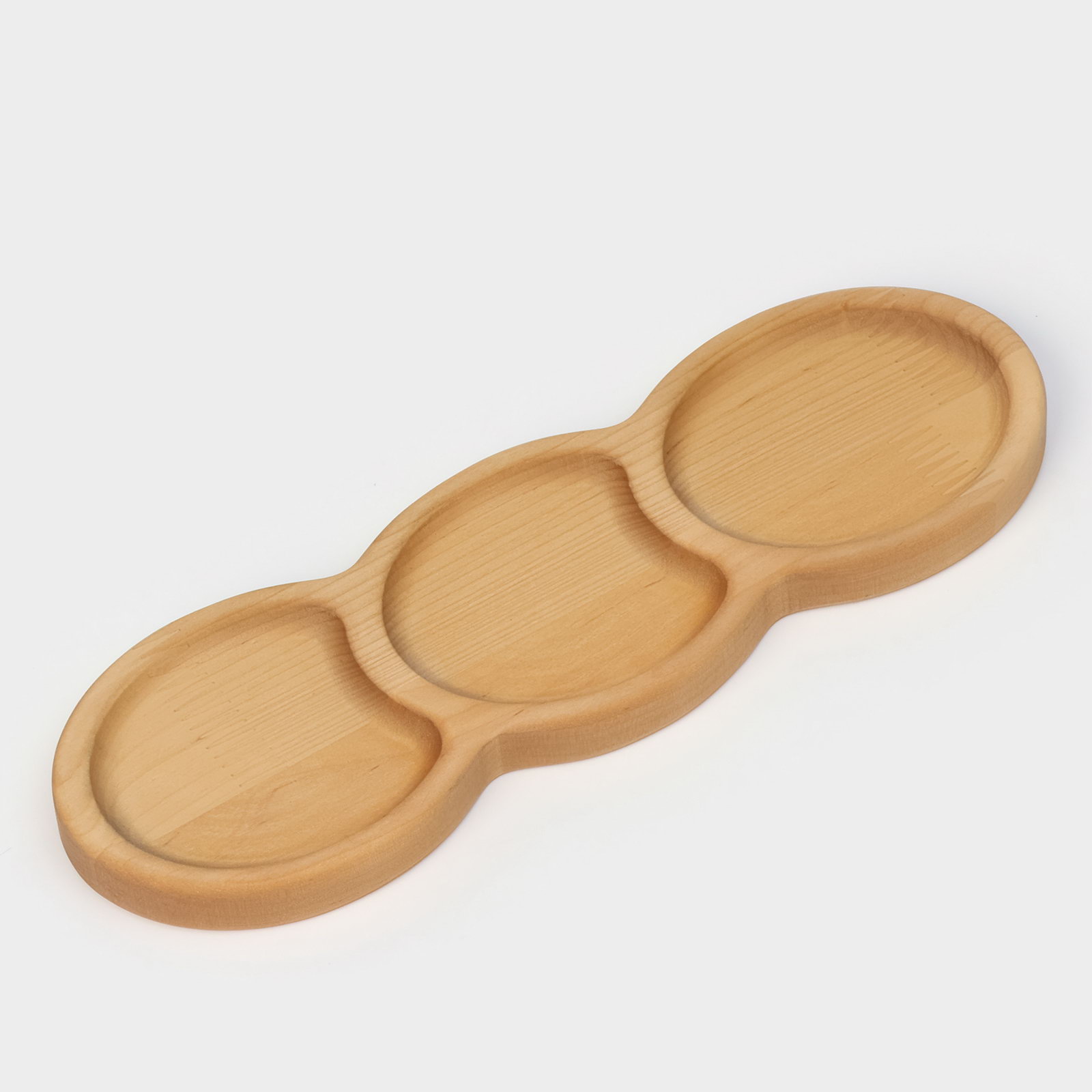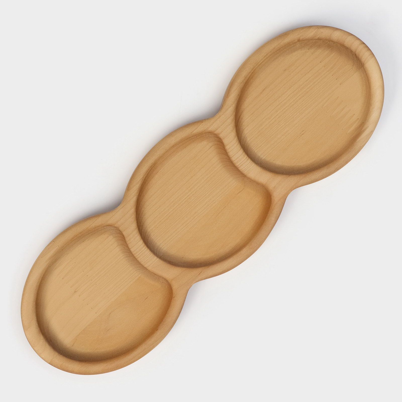 Менажница деревянная "Светофор", 3 секции, 30x10x1.8 см, пропитана минеральным маслом, в подарочной коробке, берёза, Adelica, Россия